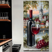 Tablou Canvas Premium, LuxCanva® N1105, Apus in Orasul Vechi, Cetate, Romantic, Oras, Lac, Vin Rosu, Sticla, Bautura, Struguri, Pahar, Pub, Lounge, Bar, Restaurant, Bucatarie - 40 X 80 / Doar Sasiu Lemn / Normala
