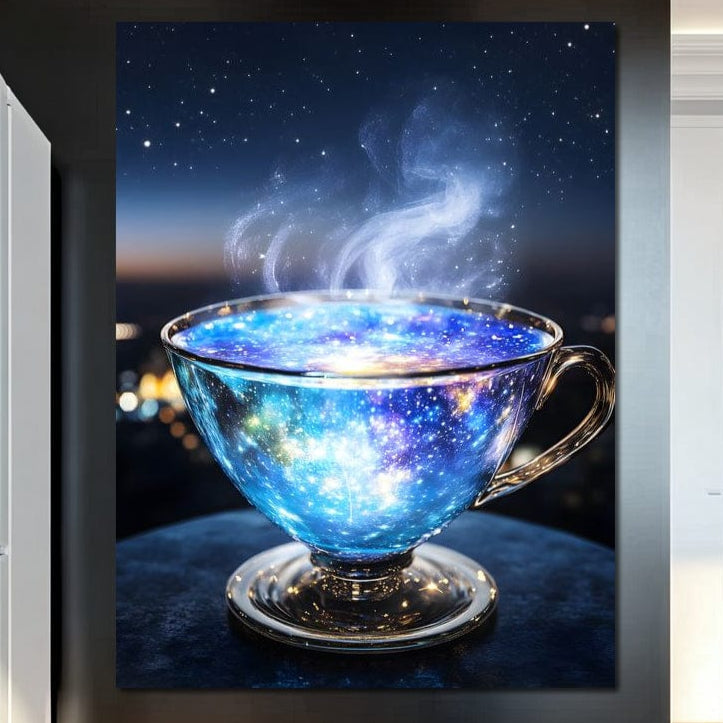 Tablou Canvas Premium, LuxCanva® N1118, Infuzie Cosmica, Ceai, Ceasca, Univers, Galaxie, Stele, Mister, Aburi, Noapte, Relaxare, Cafenea, Pub, Lounge, Bar, Restaurant, Bucatarie - 45 X 60 / Doar Sasiu Lemn / Normala