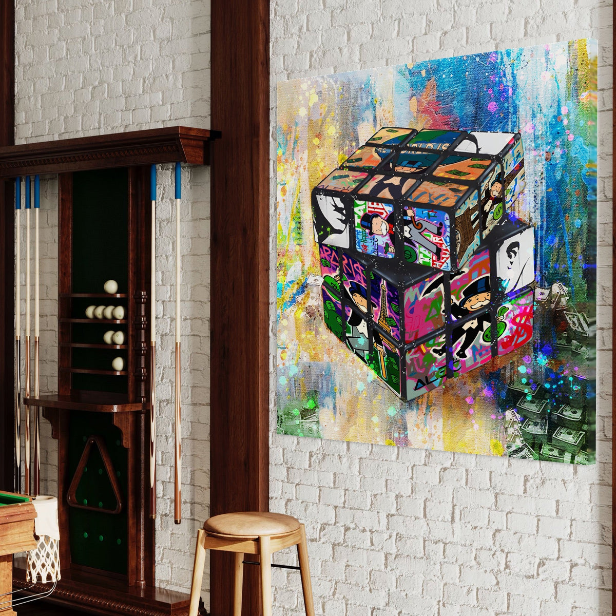 Tablou Canvas Premium LuxCanva® A1227, Monopoly Cube , Decorativ, Living, Cub Rubic, Joc, SUA, Camera Copil, Culori Vibrante - 50 X 50
