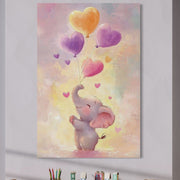 Tablou Canvas Premium, LuxCanva® K1039, Elefantelul Visator, Emotie, Zbor, Inimi, Baloane, Bucurie, Vant, Fericire, Micut, Pui, Iubire, Gingasie, Dulce, Pastel, Magie, Camera Copil, Dormitor