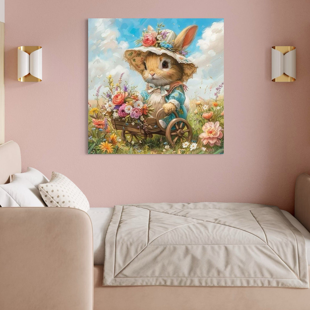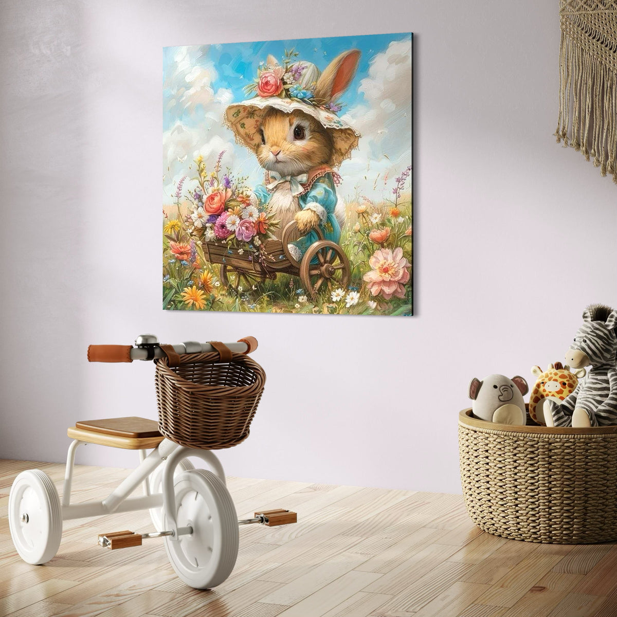 Tablou Canvas Premium, LuxCanva® K1062, Caruta Magica, Iepuras, Palarie, Flori, Gradina, Poveste, Fabula, Natura, Dragalas, Camera Copil, Dormitor