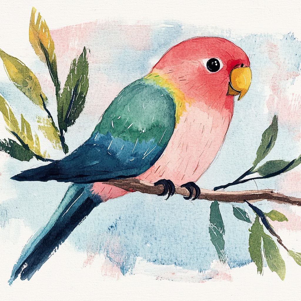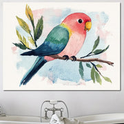 Tablou Canvas Premium, LuxCanva® M1069, Curcubeu in Miniatura, Papagal, Pui, Exotic, Curcubeu, Acuarela, Pictura, Ramura, Copilarie, Inocenta, Birou, Living, Camera Copil - 45 X 60
