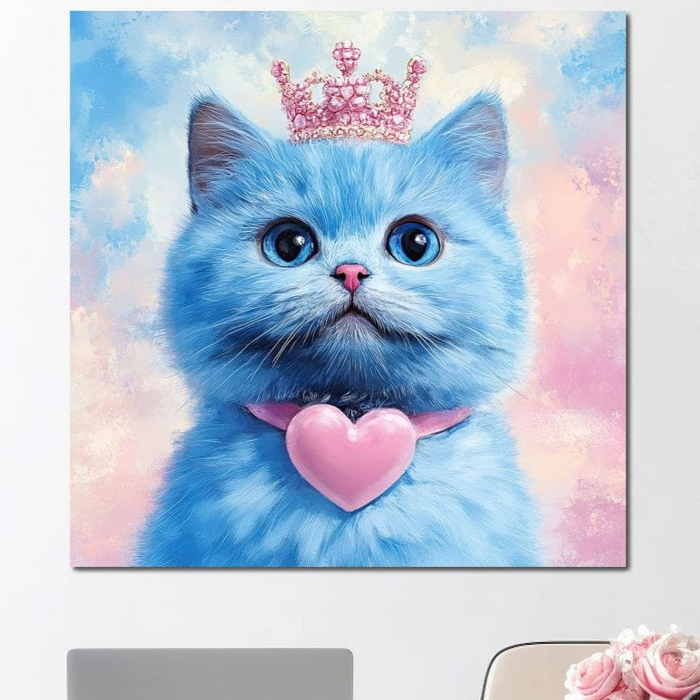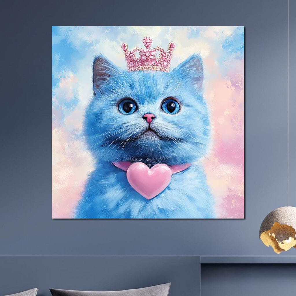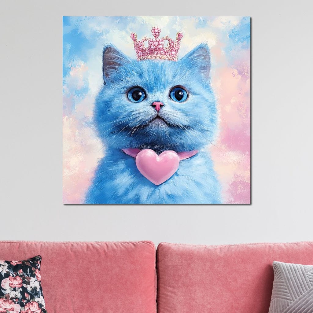 Tablou Canvas Premium, LuxCanva® M1212, Printesa Pastelului, Pisica, Coroana, Inima, Blanita, Pastel, Printesa, Roz, Dragalas, Dulce, Pufos, Adorabil, Birou, Living, Camera Copil - 50 X 50