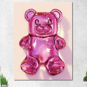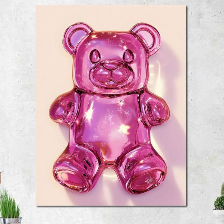 Tablou Canvas Premium, LuxCanva® N1126, Candy Bear, Ursulet, Roz, Jeleu, Desert, Dulce, Zahar, Copilarie, Stralucitor, Cool, Cofetarie, Restaurant, Bucatarie - 45 X 60 / Doar Sasiu Lemn / Normala