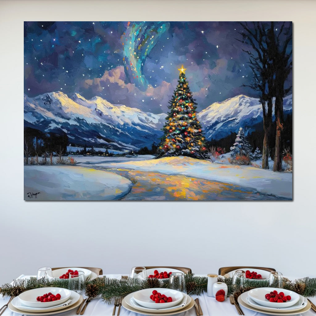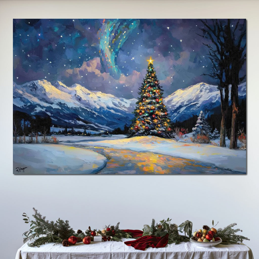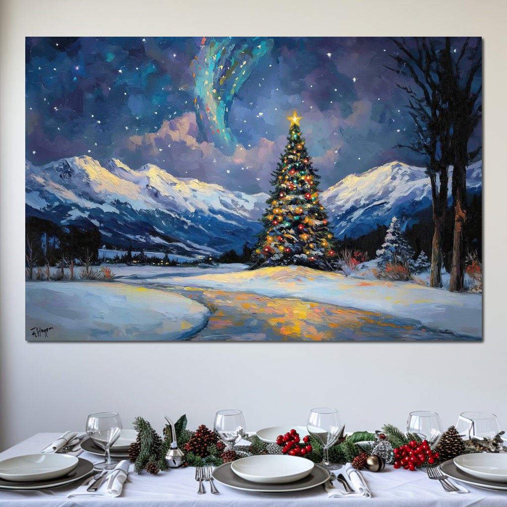 Tablou Canvas Premium LuxCanva® D1010, Noapte Inzapezita , Brad, Impodobit, Luminite, Noapte, Natura, Living Room, Culori vibrante - 60 X 90