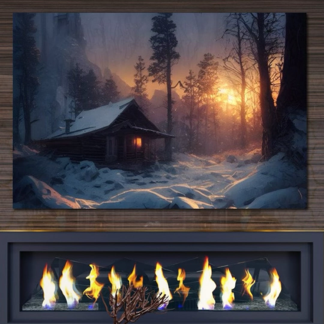 Tablou Canvas Premium LuxCanva® D1013, Cabana din Povesti , Cabana, Lemn, Apus, Mister, Magie, Living Room, Culori vibrante - 60 X 80