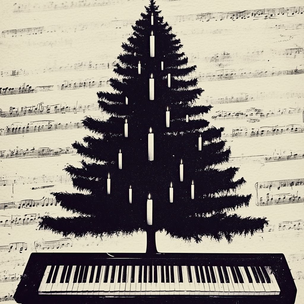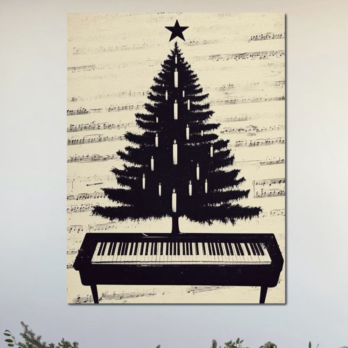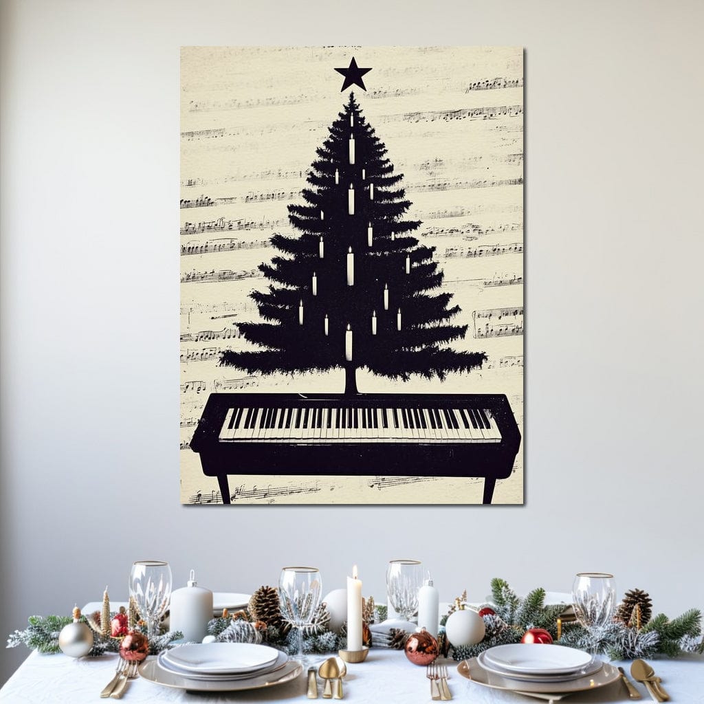 Tablou Canvas Premium LuxCanva® D1017, Bradul de pe Pian , Brad, Abstract, Negru, Pian, Clape, Living Room, Culori vibrante - 60 X 80