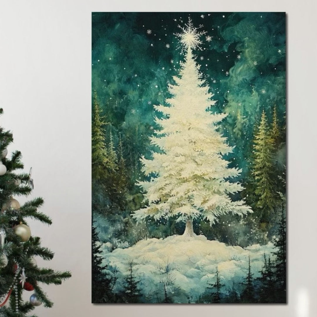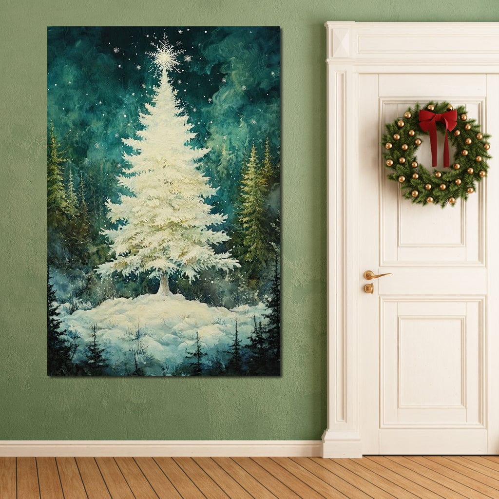 Tablou Canvas Premium, LuxCanva® D1020, Magia Bradului Alb, Brad, Alb, Zapada, Magie, Bucurie, Living Room, Culori vibrante - 60 X 80