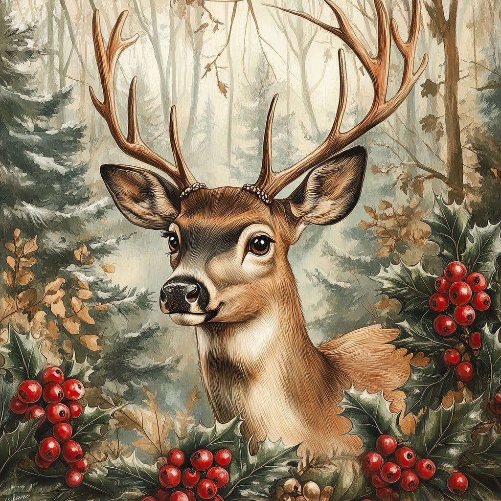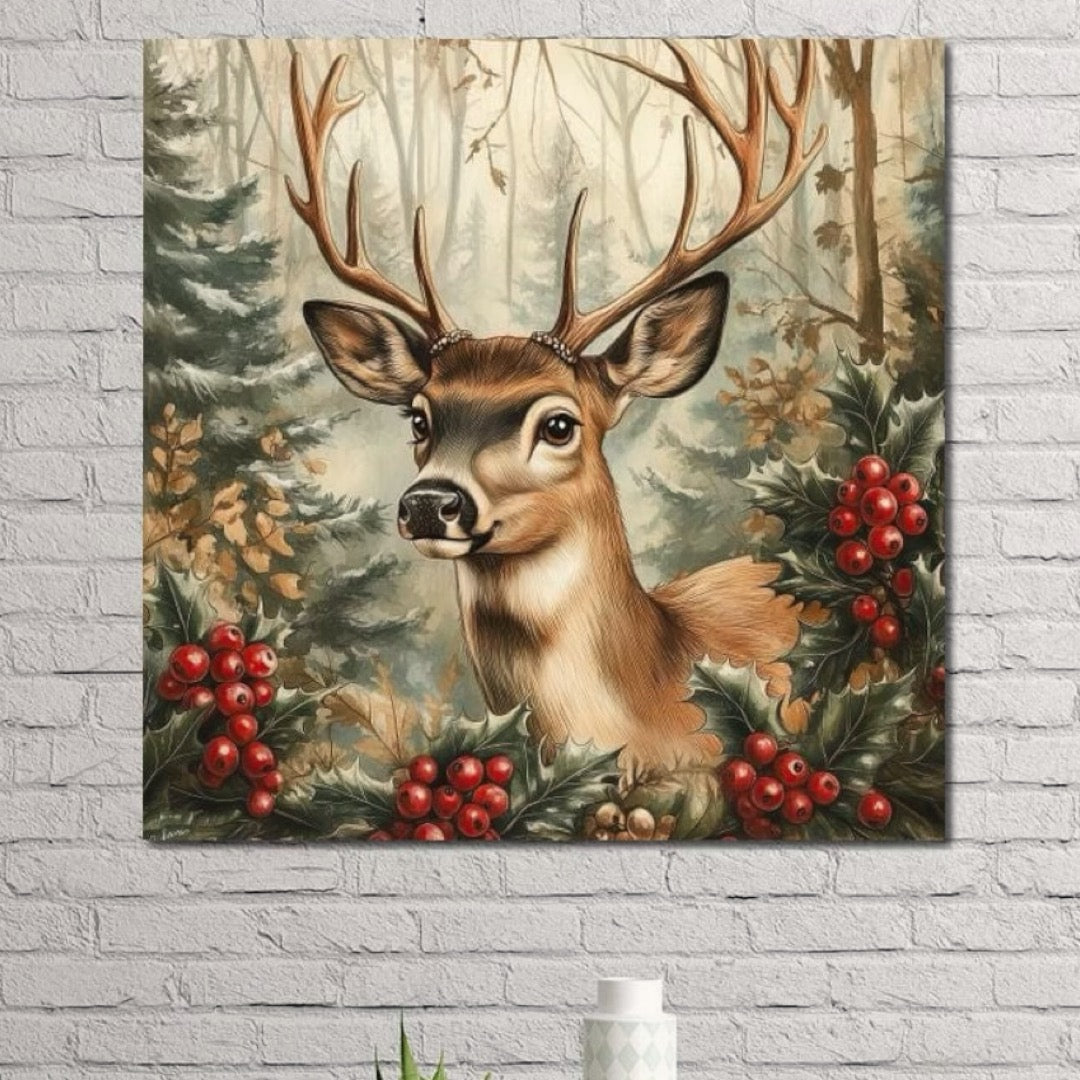 Tablou Canvas Premium LuxCanva® D1025, Cerbul din Padurea Magica ,Brazi, Cerb, Animal, Salbatic, Padure, Living Room, Culori vibrante - 50 X 50