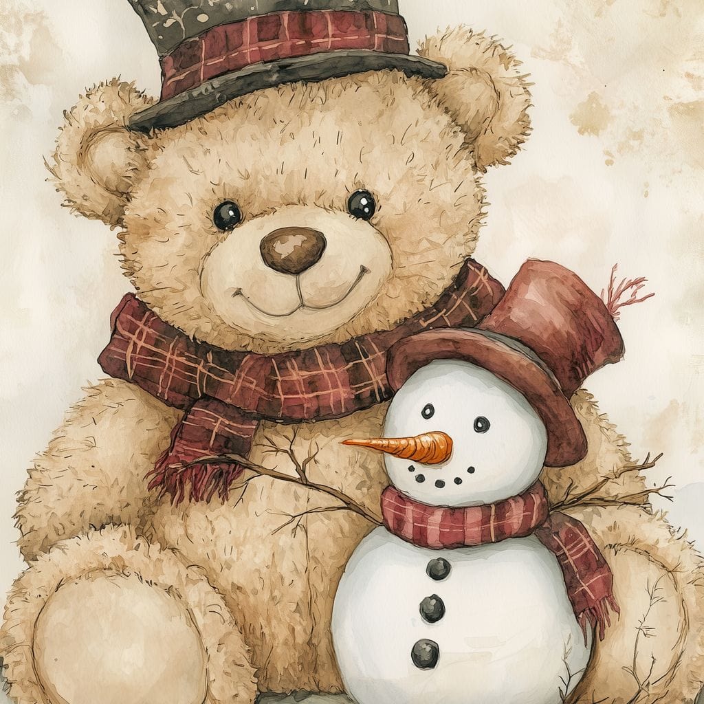 Tablou Canvas Premium LuxCanva® D1030, Prieteni Buni , Ursulet, Plus, Om de Zapada, Prietenie, Imbratisare, Living Room, Culori vibrante - 60 X 80