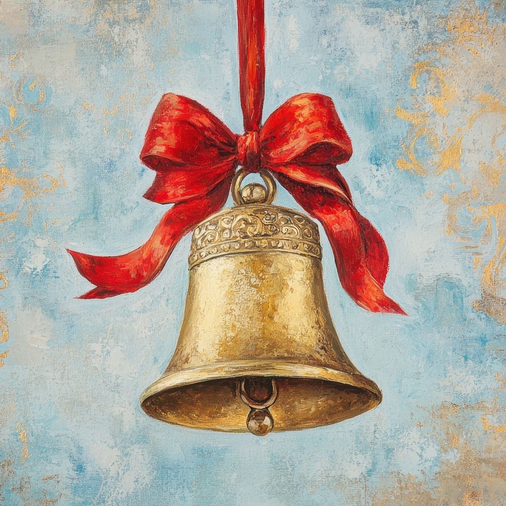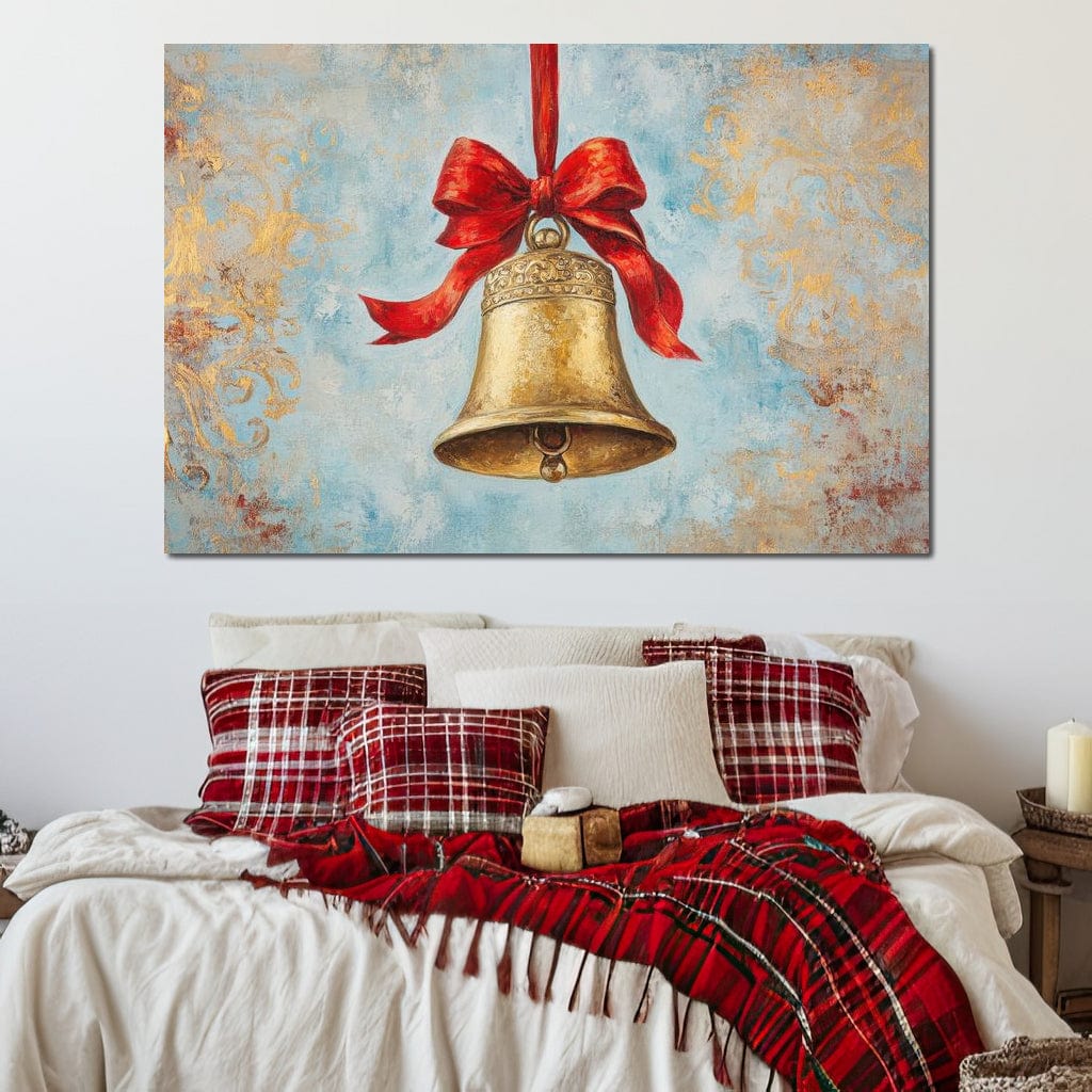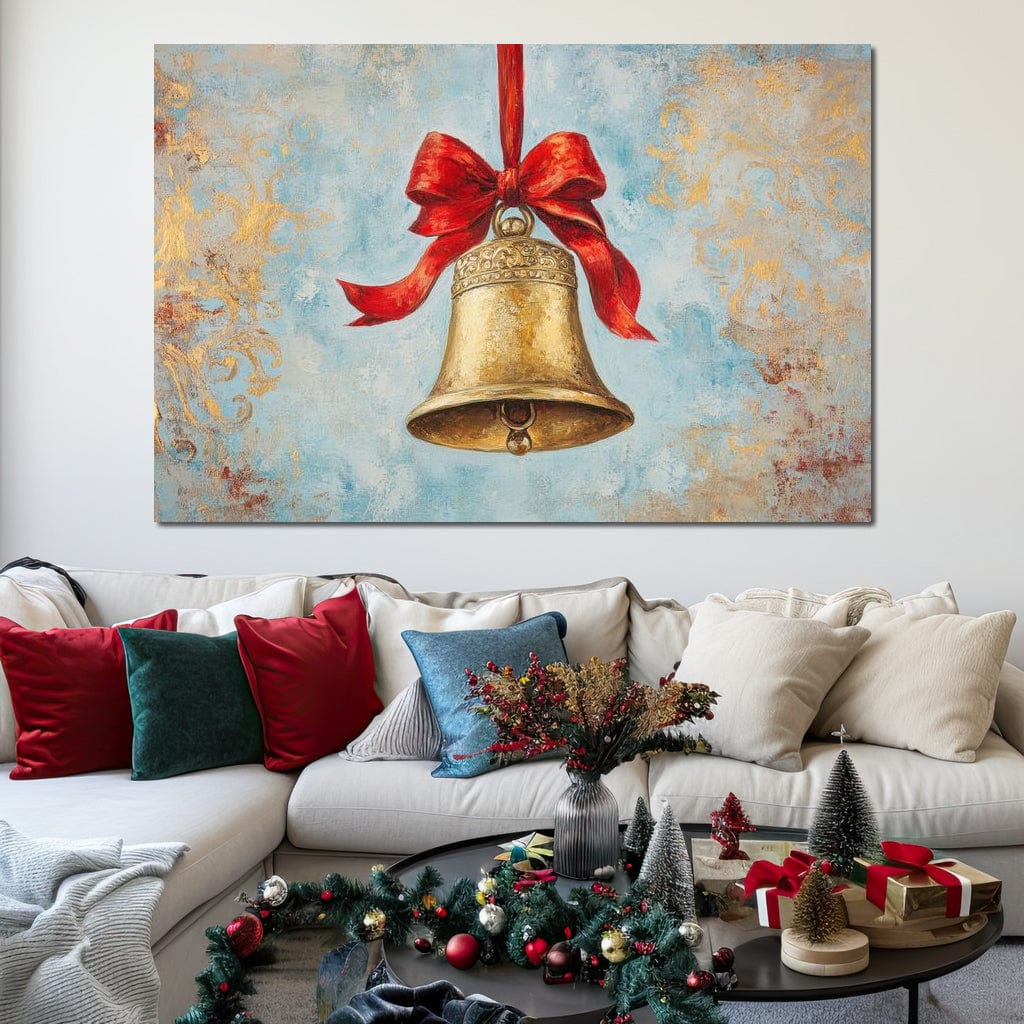 Tablou Canvas Premium LuxCanva® D1039, Clopotelul Muzical , Clopot, Brad, Decoratiune, Auriu, Muzical, Colindat, Living Room, Culori vibrante - 40 X 60