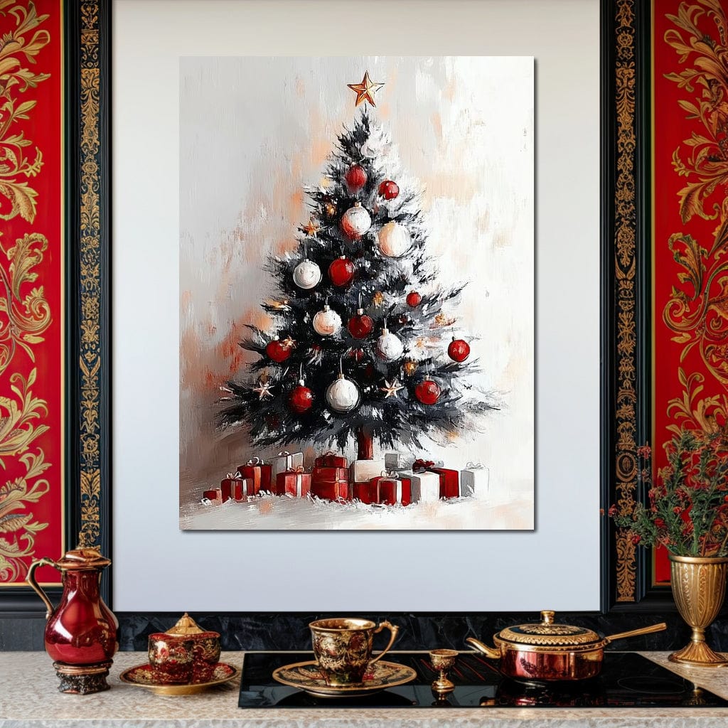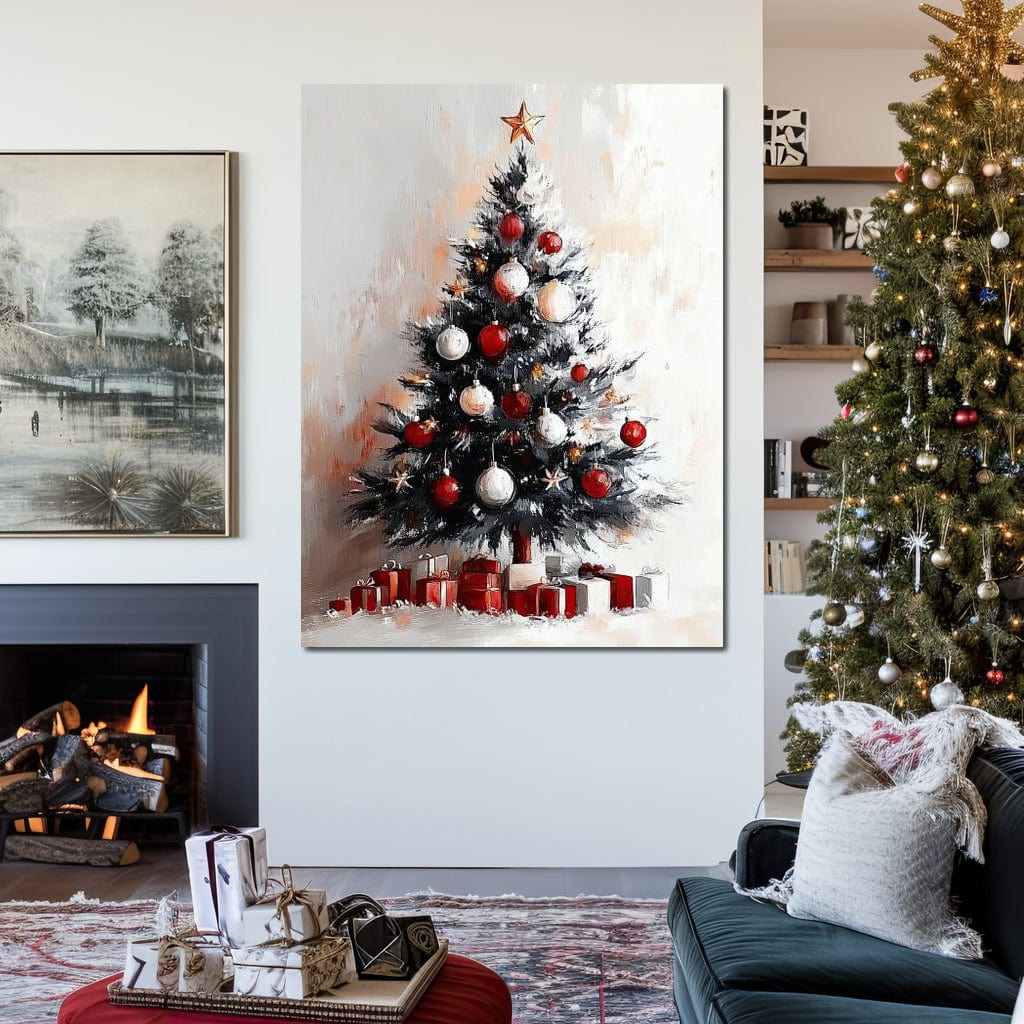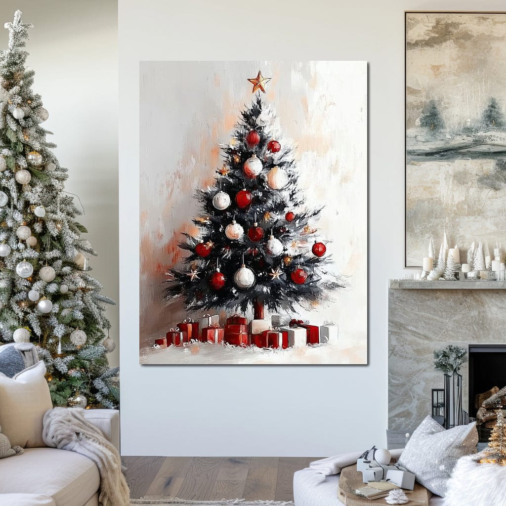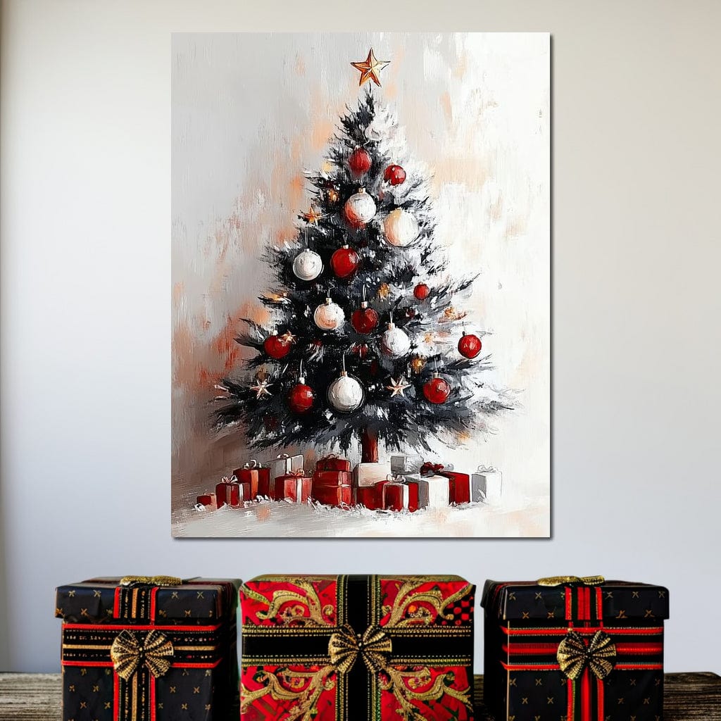 Tablou Canvas Premium LuxCanva® D1046, Brad si Cadouri sub Lumina Stelei , Craciun, Stea, Brad, Cadouri, Festiv, Living Room, Culori vibrante - 60 X 80