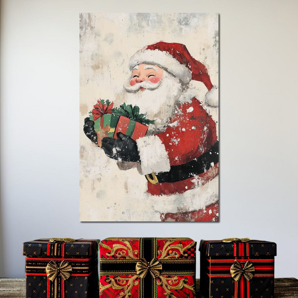 Tablou Canvas Premium LuxCanva® D1055, Mos Craciun si Darurile Copiilor , Costum, Ambalaje, Funde, Curea, Caciula, Living Room, Culori vibrante - 40 X 60