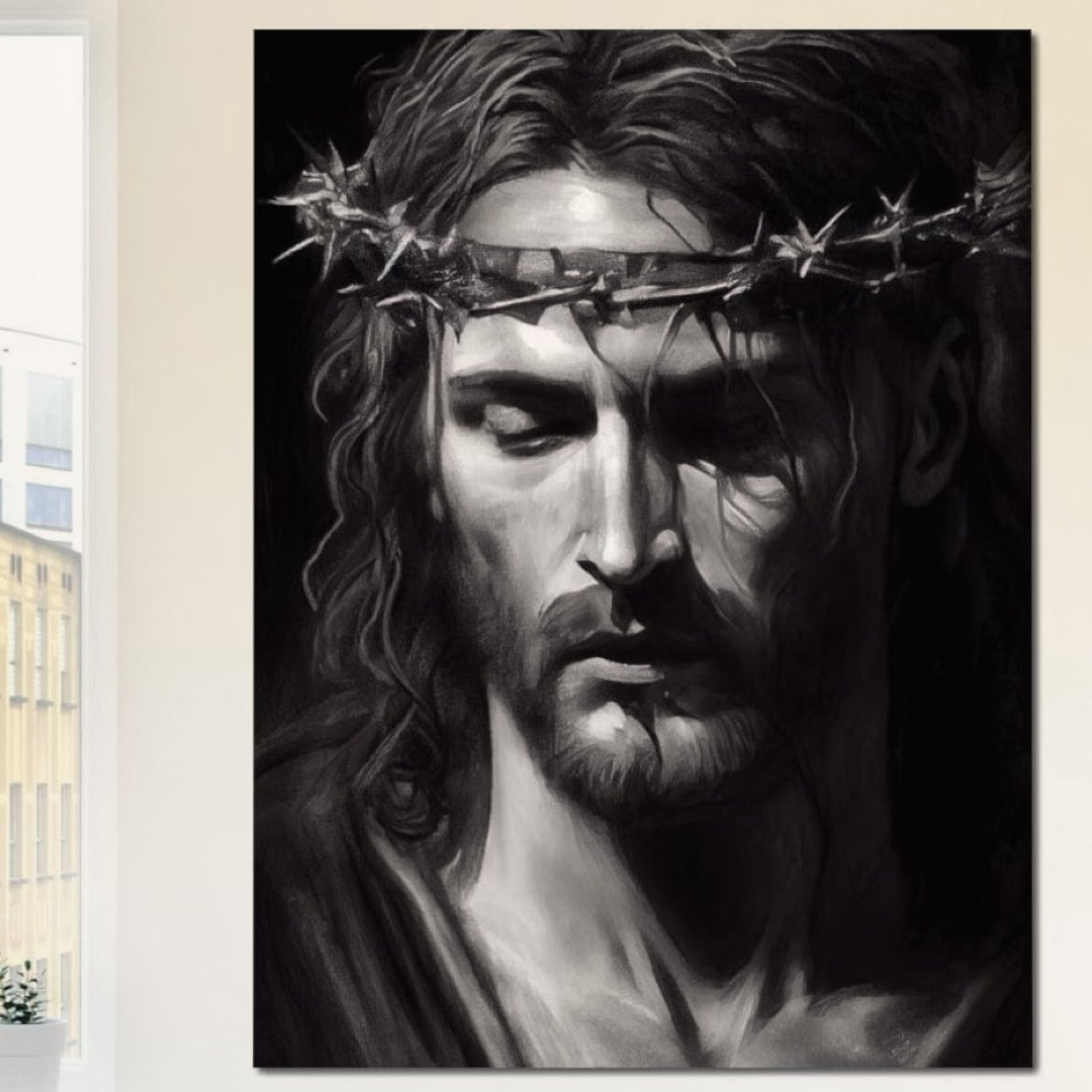 Tablou Canvas Premium LuxCanva® H1001, Durere si Speranta , Sacrificiu, Spini, Coroana, Mantuire, Iisus, Durere, Sange, Jertfa, Living, Dormitor - 45 X 60