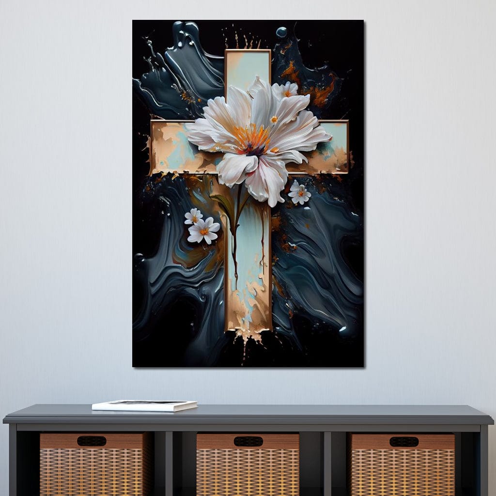 Tablou Canvas Premium LuxCanva® H1026 Crucea cu Flori , Flori, Cruce, Delicatete, Gingasie, Speranta, Puritate, Univers, Cale, Living, Dormitor - 60 X 90