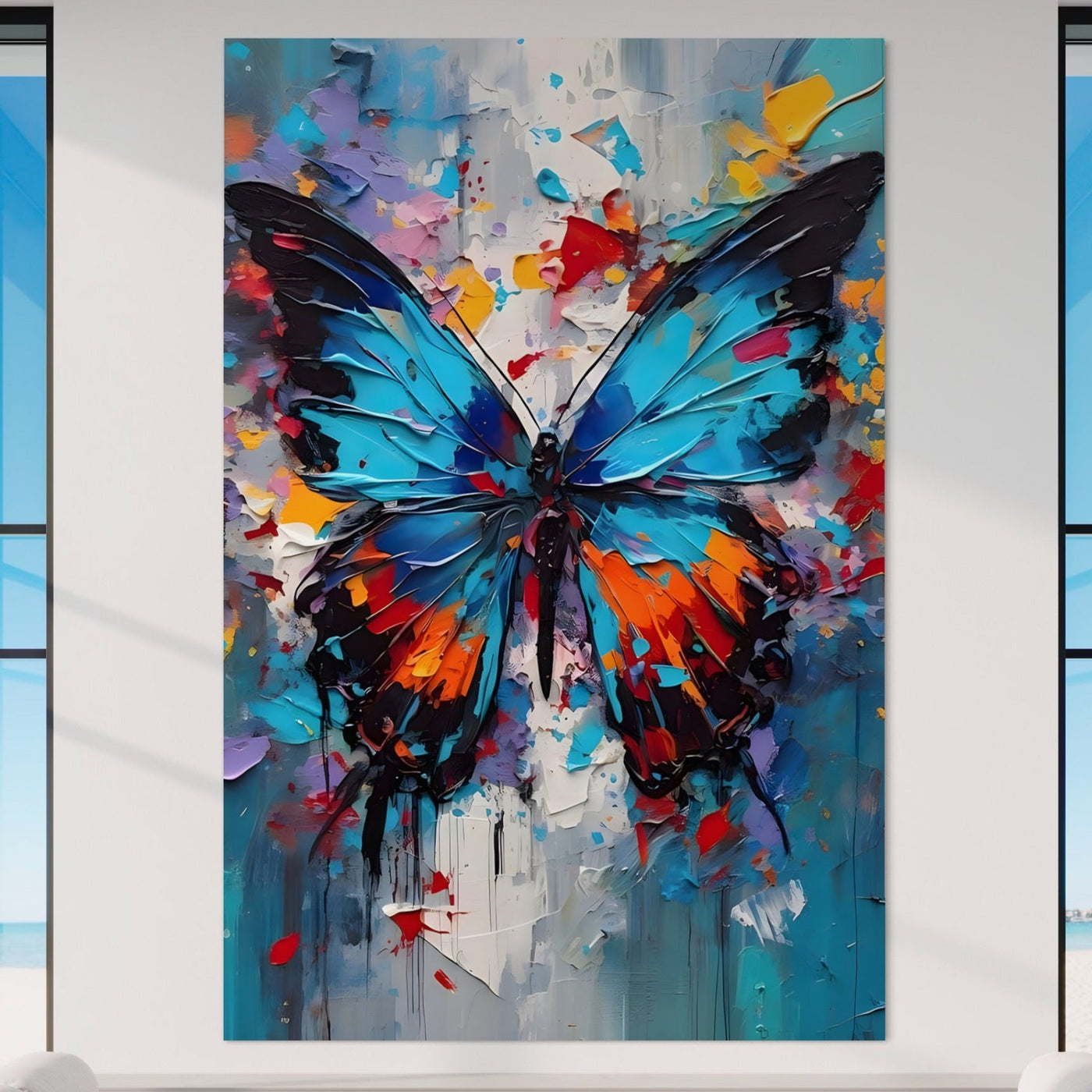 Tablou Canvas Premium LuxCanva® B1109, Fluturele Albastru , Living, Fluture, Albastru, Colorat, Aripi, Culori Vibrante - 60 X 90
