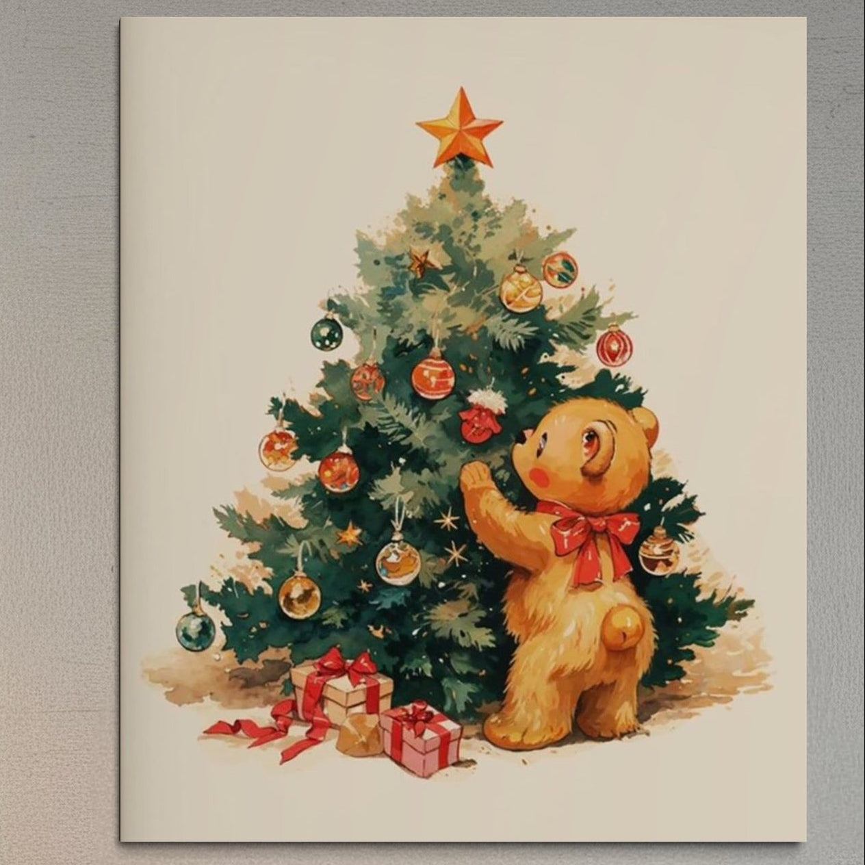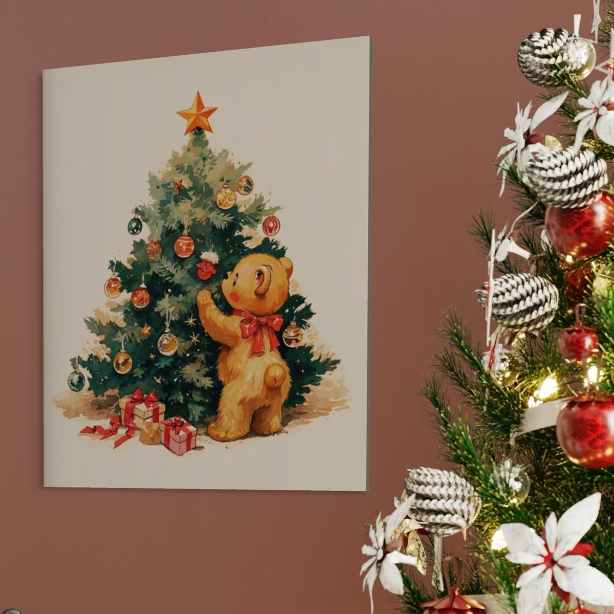 Tablou Canvas Premium, LuxCanva® D1104, Craciunul Ursuletului, Magie, Brad, Poveste, Noapte, Inocenta, Caldura, Poveste, Jucaus, Cadouri, Animalut, Fericire, Ajun, Craciun, Living, Dormitor
