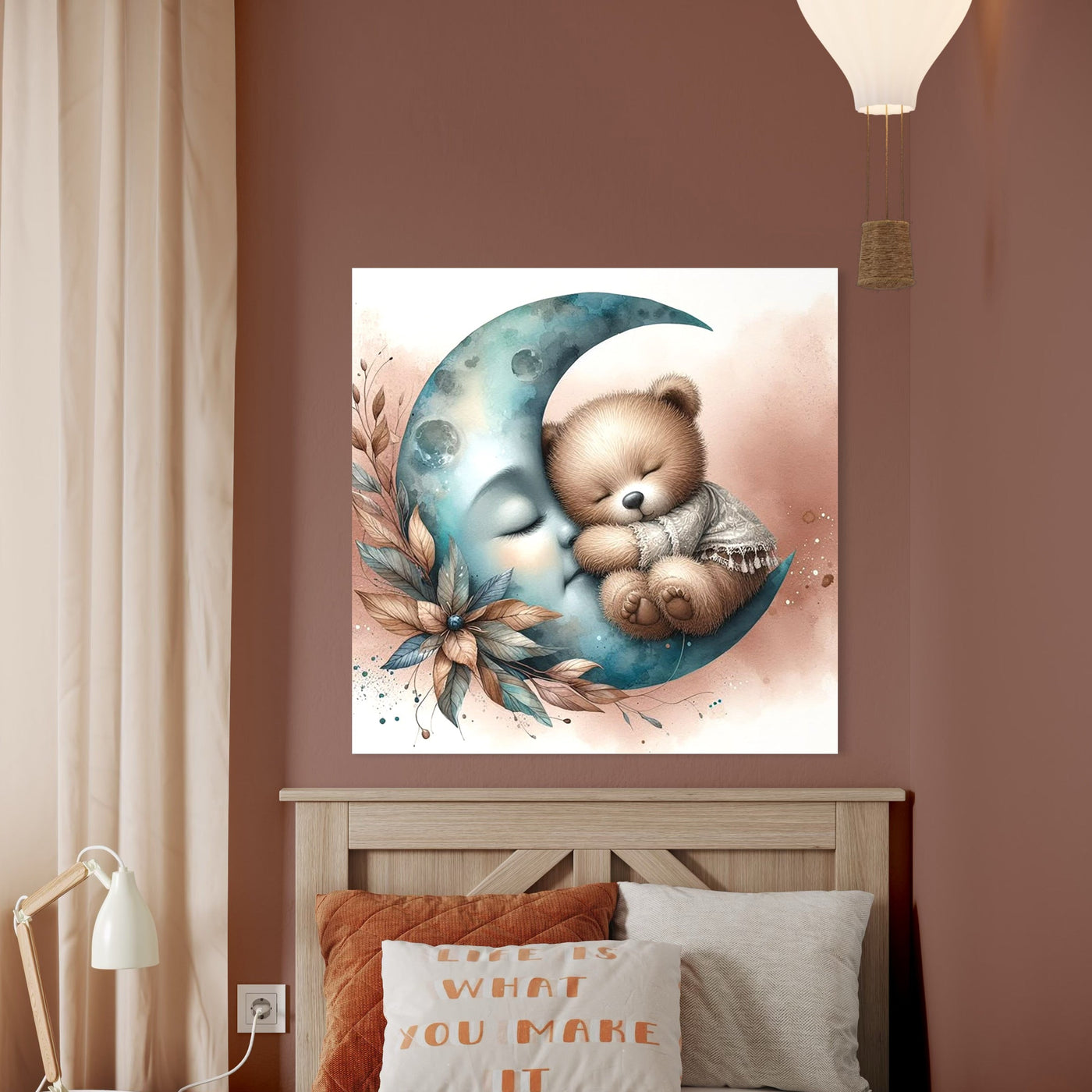 Tablou Canvas Premium, LuxCanva® K1054, In Leaganul Ceresc, Urs, Imbratisare, Luna, Liniste, Ceresc, Protectie, Univers, Albastru, Aurora, Mangaiere, Praf, Stele, Visare, Camera Copil, Dormitor - 50 X 50 / Doar Sasiu Lemn / Normala