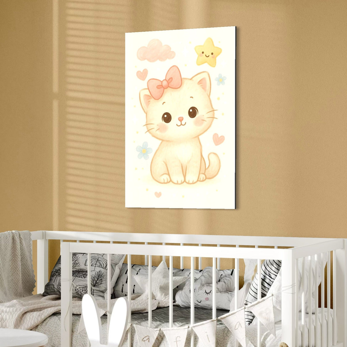 Tablou Canvas Premium, LuxCanva® K1075, Un Strop de Gingasie, Pisicuta, Steluta, Fundita, Floricele, Baby, Adorabil, Camera Copil, Dormitor