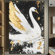 Tablou Canvas Premium, LuxCanva® M1011, Lebada Stinsa in Aur, Eleganta, Portret, Pasare, Lebada, Auriu, Contrast, Aripi, Pene, Birou, Living, Camera Copii - 60 X 90