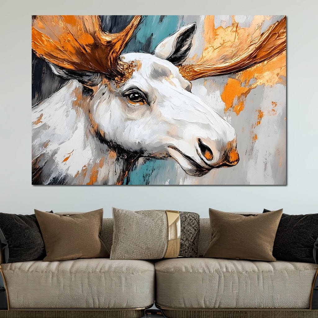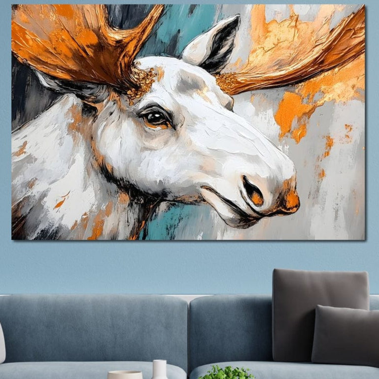 Tablou Canvas Premium, LuxCanva® M1248, Chemarea Nordului, Elan, Tundra, Nordic, Arctic, Mamifer, Coarne, Portret, Animal, Pictura, Magnific, Birou, Living, Camera Copil