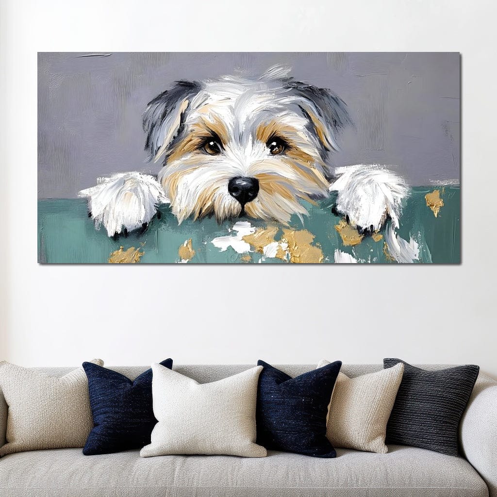 Tablou Canvas Premium, LuxCanva® M1262, Urechiuse la Panda, Yorkshire, Joaca, Curiozitate, Blanita, Simpatic, Privire, Portret, Perete, Pictura, Caine, Birou, Living, Camera Copil - 50 X 100