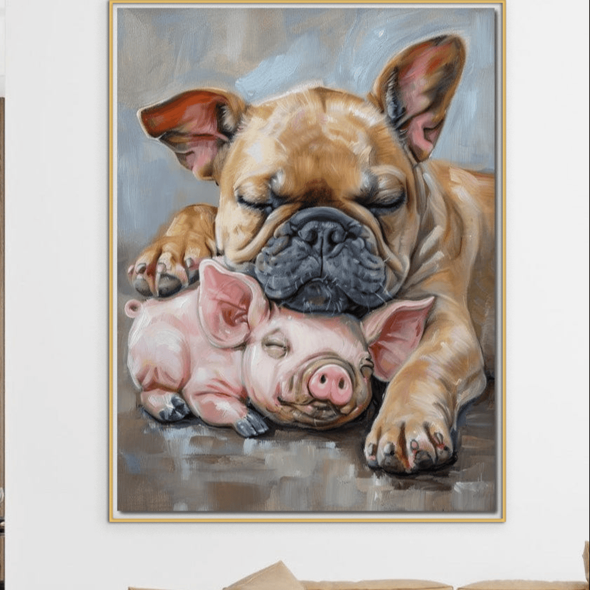 Tablou Canvas Premium, LuxCanva® M1264, Suflete Cuminti, Purcel, Caine, Animale, Odihna, Relaxare, Prietenie, Imbratisare, Copilarie, Pictura, Visatori, Roz, Birou, Living, Camera Copil - 45 X 60