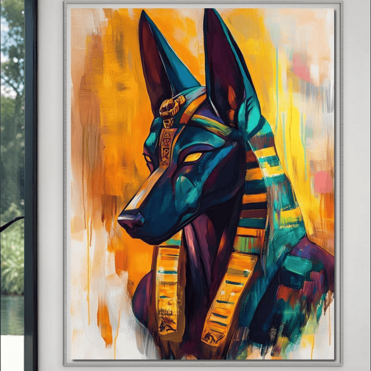 Tablou Canvas Premium, LuxCanva® M1284, Portretul lui Anubis, Egipt, Mitologie, Zeu, Anubis, Hieroglife, Sacru, Templu, Cultura, Antichitate, Birou, Living, Camera Copil