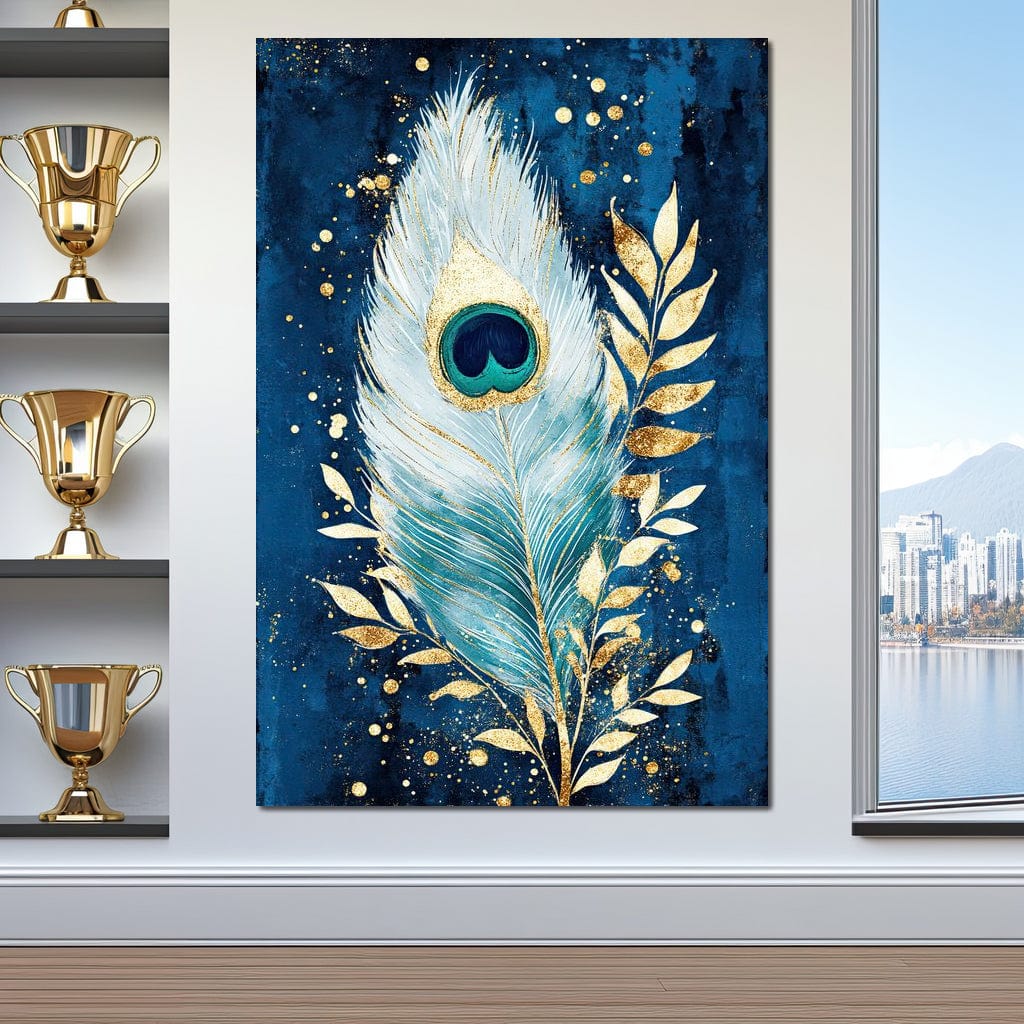 Tablou Canvas Premium, LuxCanva® M1402, O Pana Fermecata, Paun, Penaj, Auriu, Stralucitor, Elegant, Lux, Exotic, Rafinament, Detaliat, Abstract, Birou, Living, Camera Copil - 40 X 60