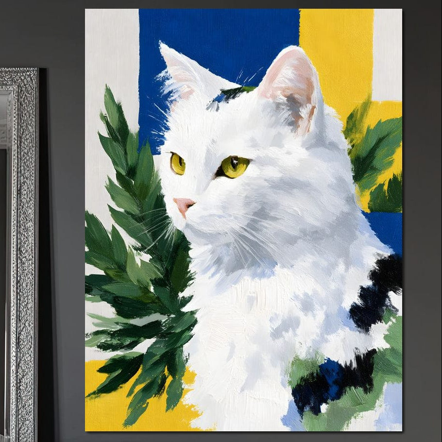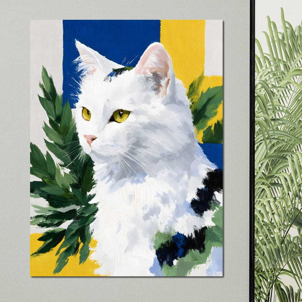 Tablou Canvas Premium, LuxCanva® M1530, In Gradina Soarelui, Pisica, Animal, Felina, Arta Abstracta, Frunze, Vegetatie, Mustati, Dormitor, Birou, Living, Camera Copil - 45 X 60 / Doar Sasiu Lemn / Normala