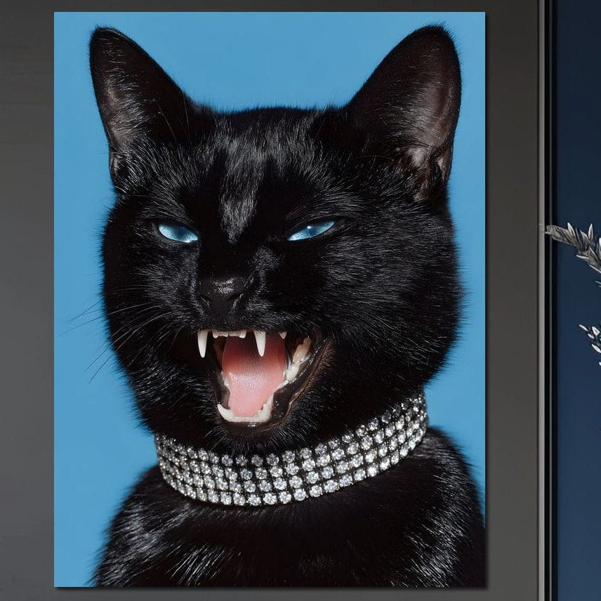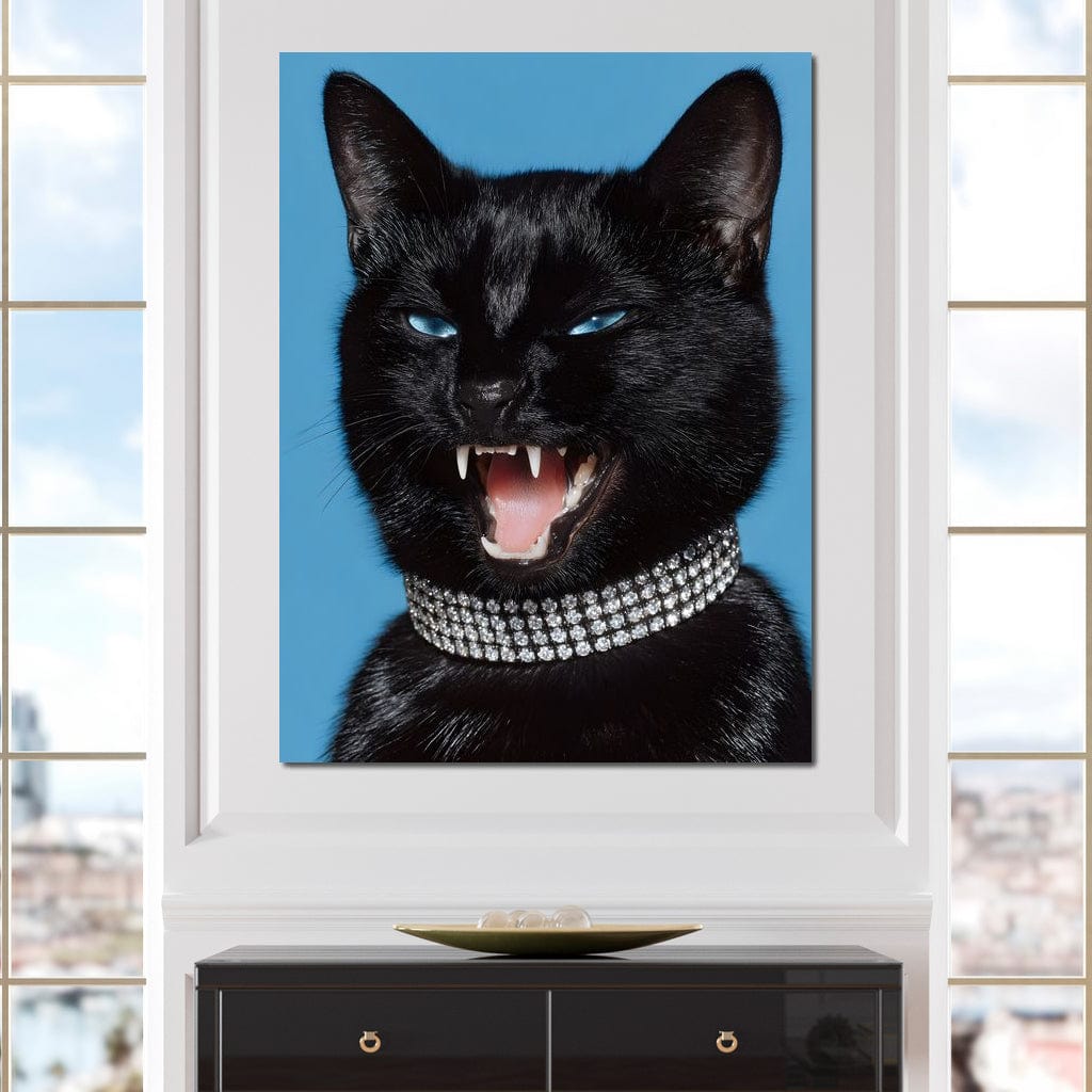 Tablou Canvas Premium, LuxCanva® M1531, Colti de Diamant, Zgarda, Diamante, Bijuterie, Motan, Felina, Animal, Fioros, Dormitor, Birou, Living, Camera Copil - 45 X 60 / Doar Sasiu Lemn / Normala