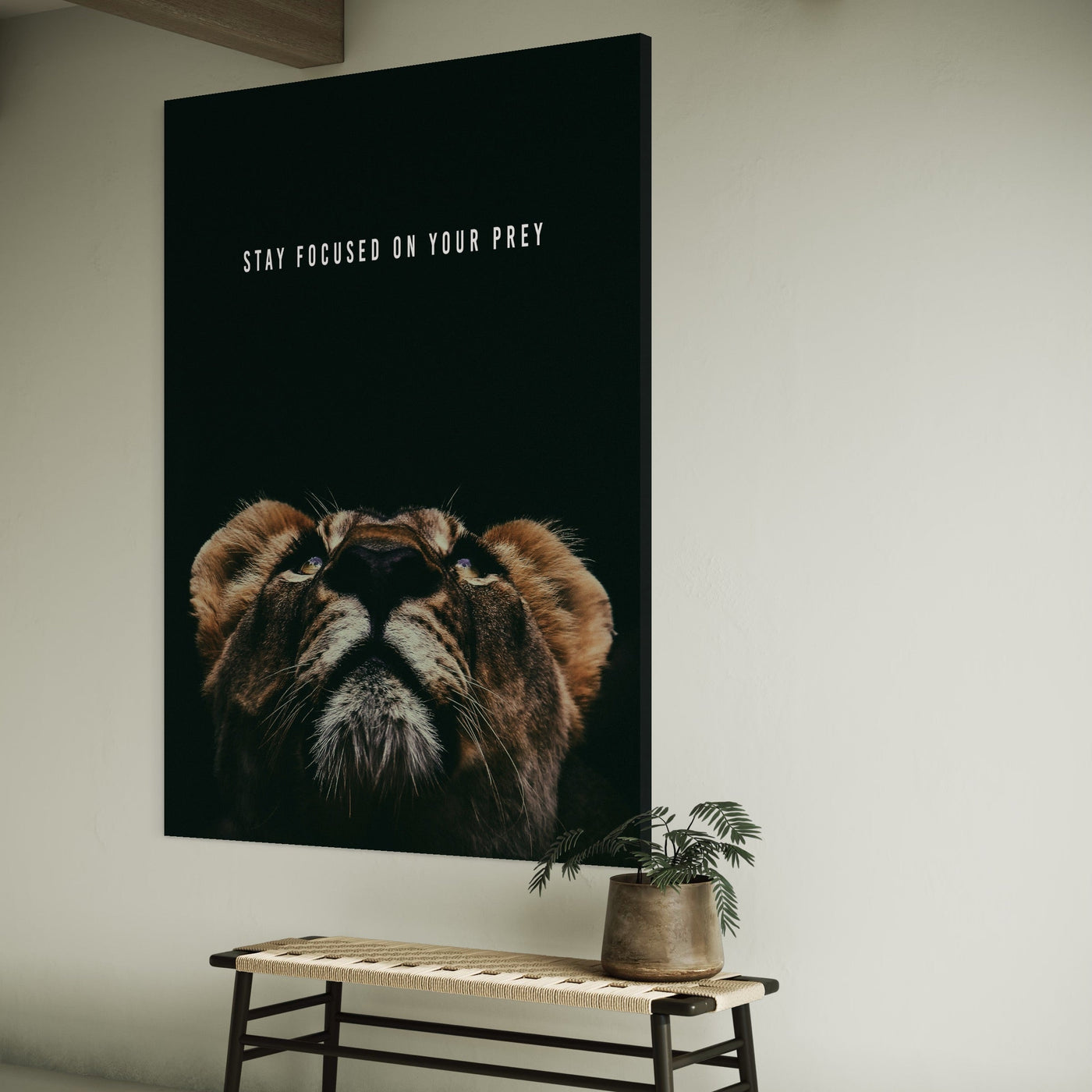 Tablou Canvas Premium LuxCanva® B1035, Stay Focused On Your Prey , Decorativ, Concentrare, Putere, Leu, Motivational, Culori Vibrante - 45 X 60
