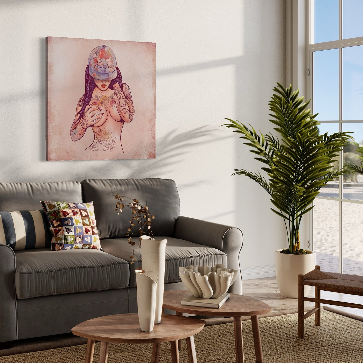 Tablou Canvas Premium LuxCanva® C1059, Sexy Girl Nude With Tattoos , Sexy Girl, Tattoo, Bedroom, Bar, Relaxare - 50 X 50