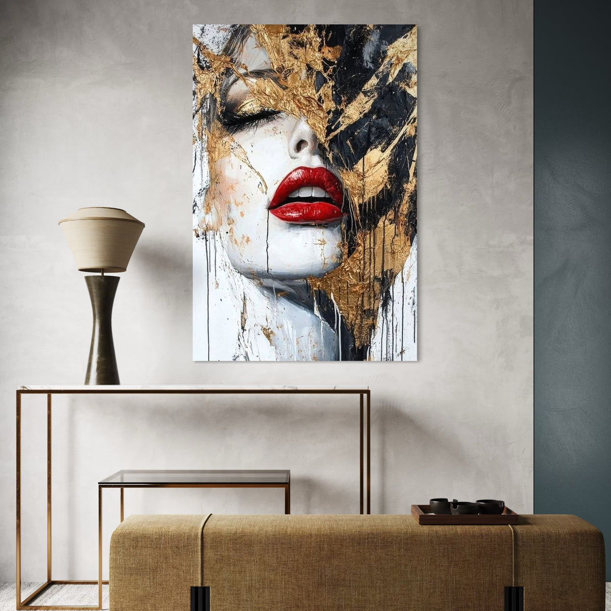 Tablou Canvas Premium, LuxCanva® P1010, Esenta in Rosu si Aur, Rosu, Auriu, Foita, Chip, Senzual, Frumos, Gratie, Seductie, Reflexii, Textura, Metamorfoza, Ruj, Living, Dormitor - 40 X 60 / Doar Sasiu Lemn / Normala