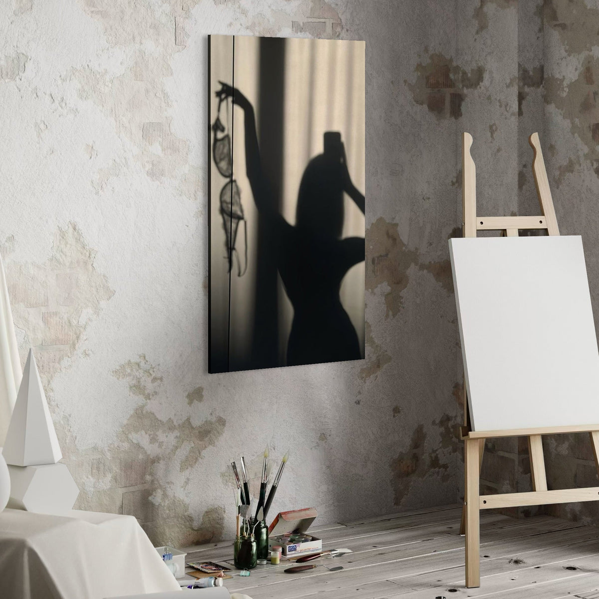 Tablou Canvas Premium, LuxCanva® P1016, Umbra Indrazneata, Silueta, Mister, Intimitate, Femeie, Senzual, Sexy, Alb, Negru, Dormitor, Living - 40 X 70 / Doar Sasiu Lemn / Normala