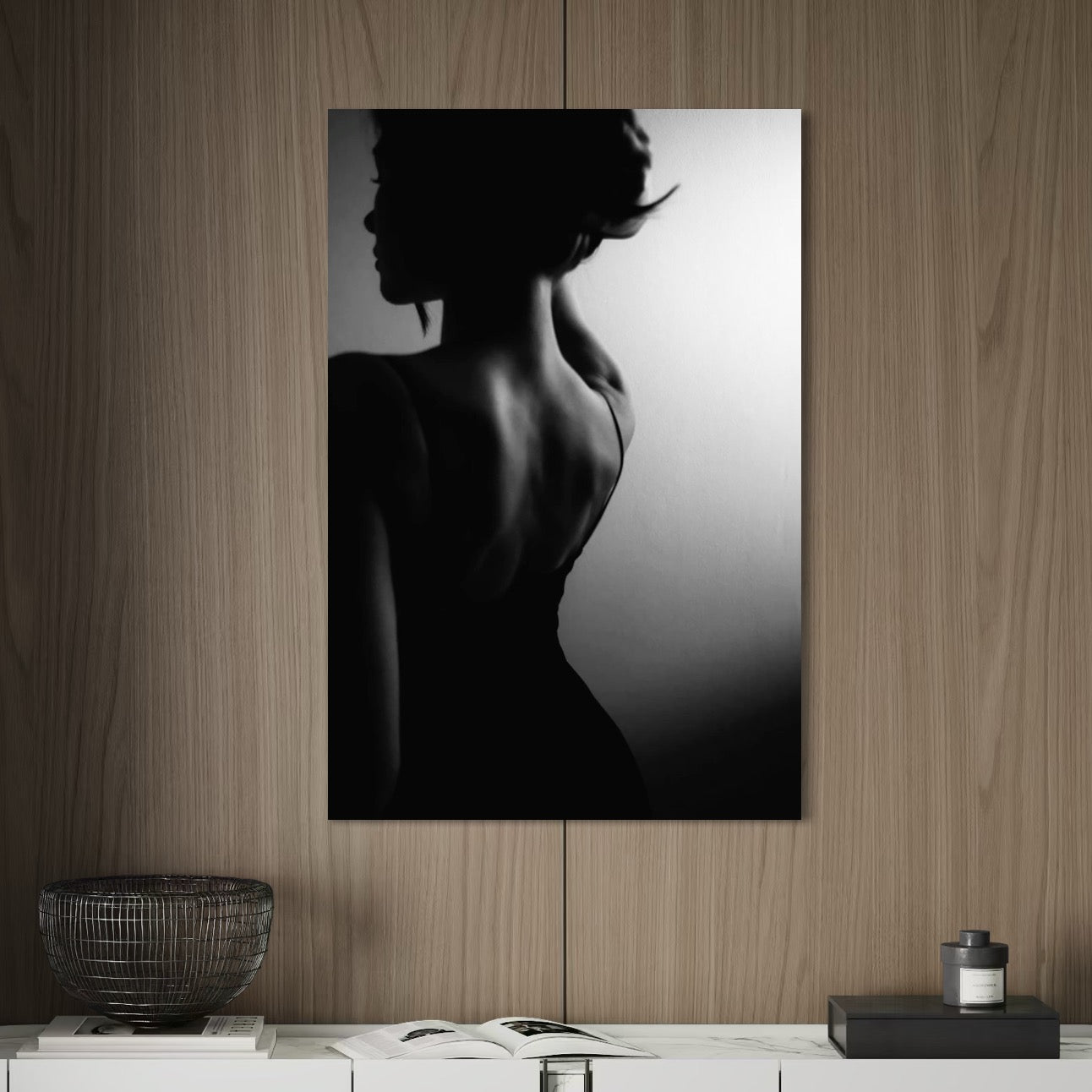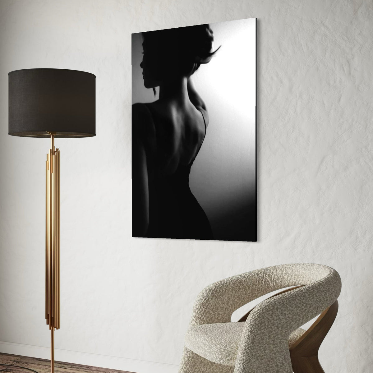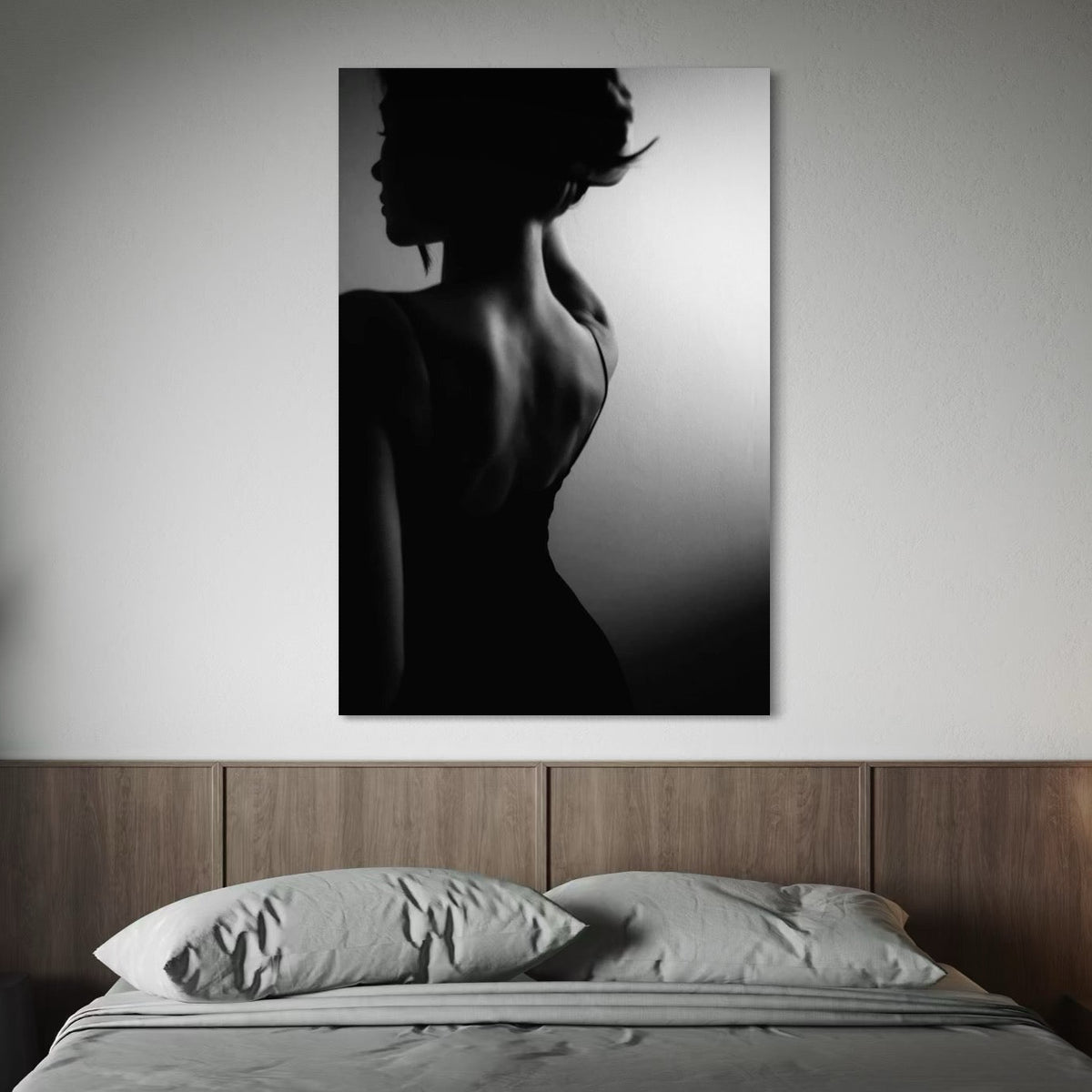 Tablou Canvas Premium, LuxCanva® P1021, Tentatie si Mister, Umbra, Silueta, Feminitate, Sexy, Seducator, Elegant, Monocrom, Dormitor, Living - 40 X 60 / Doar Sasiu Lemn / Normala