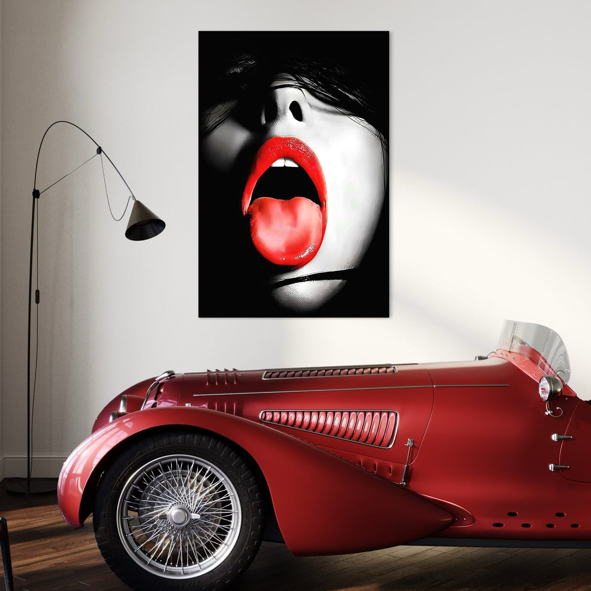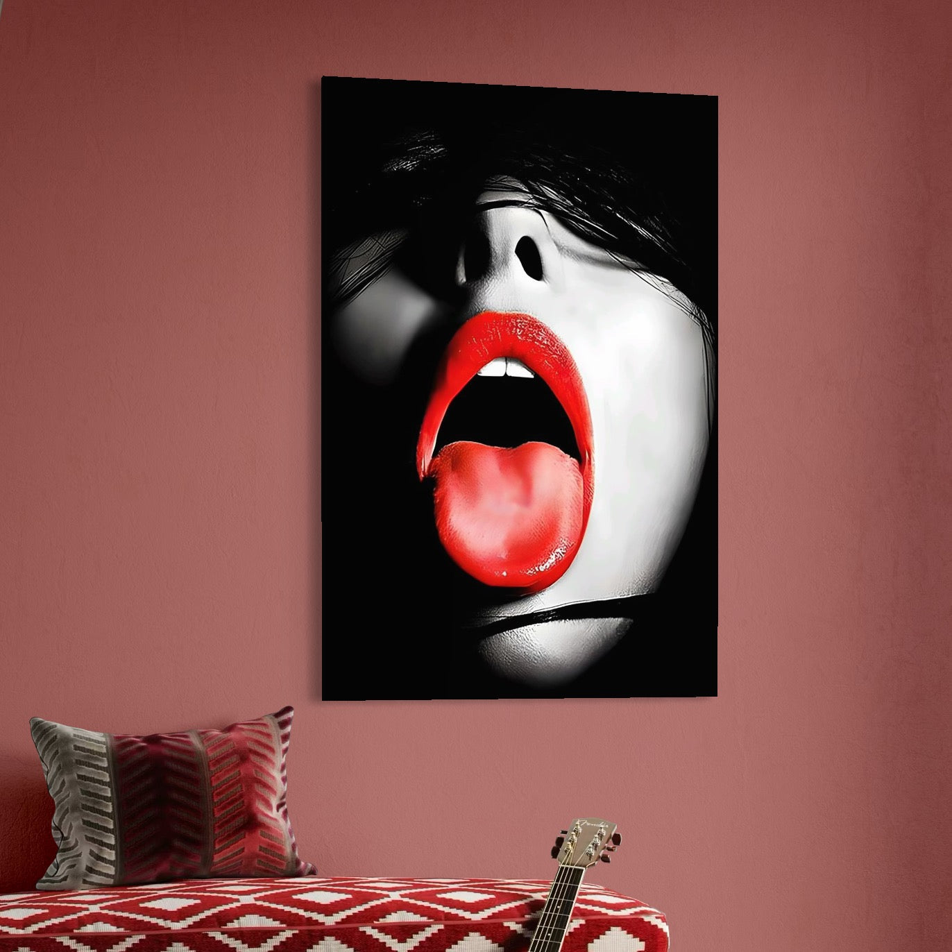 Tablou Canvas Premium, LuxCanva® P1024, Gustul Dorintei, Buze, Ruj, Rosu, Alb, Negru, Provocator, Pasional, Tentatie, Sarut, Dormitor, Living - 40 X 60 / Doar Sasiu Lemn / Normala