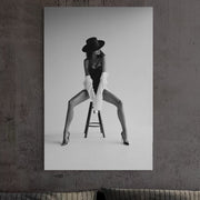 Tablou Canvas Premium, LuxCanva® P1059, Invitatie Interzisa, Feminitate, Palarie, Senzual, Provocator, Sexy, Tocuri, Alb, Negru, Camasa, Dormitor, Living