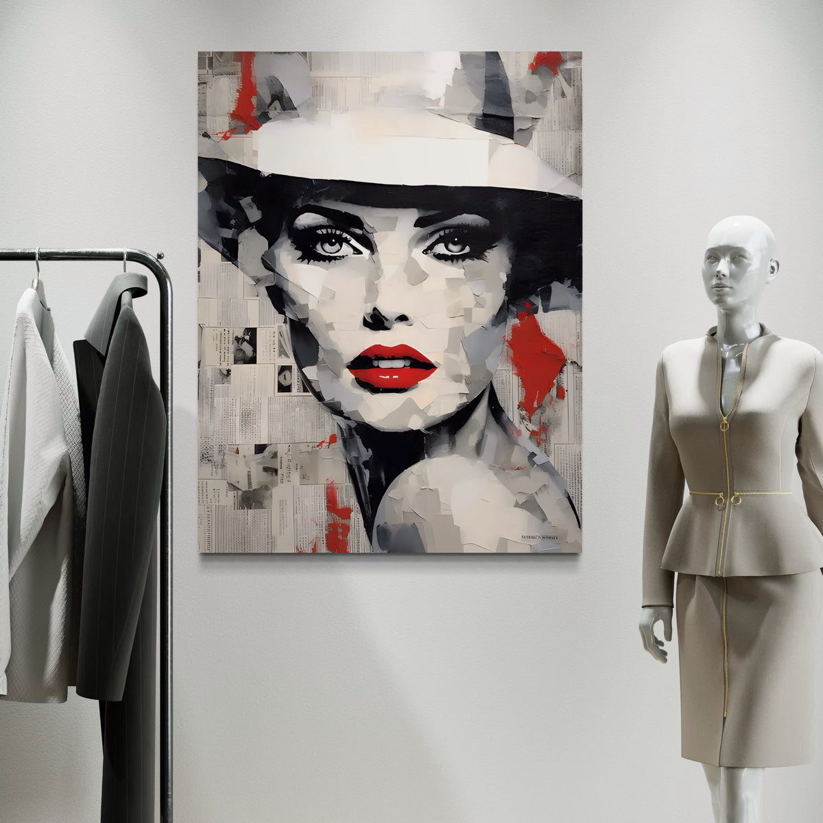 Tablou Canvas Premium LuxCanva® A1532, Madame , Room, Buze Rosii, Palarie, Frumusete, Living, Culori Vibrante