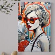 Tablou Canvas Premium LuxCanva® C1139, Picture Of Beautiful Girl , Culori, City, Sunglasses, Living Room, Bar, Relaxare, Culori Vibrante - 65 X 100