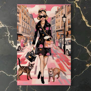 Tablou Canvas Premium LuxCanva® C1151, Lady Walking With Cats , Culori, Fashion, Animals, Beauty, Living Room, Bar, Relaxare, Culori Vibrante