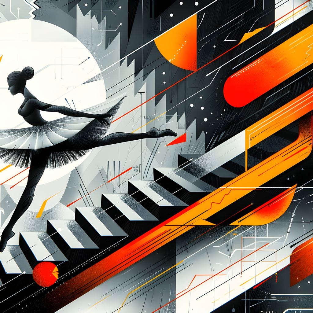 Tablou Canvas Premium, LuxCanva® G1115, Balet in Cosmos, Clape, Balerina, Ritm, Zbor, Simfonie, Vizual, Gratie, Scari, Univers, Living, Dormitor - 40 X 60