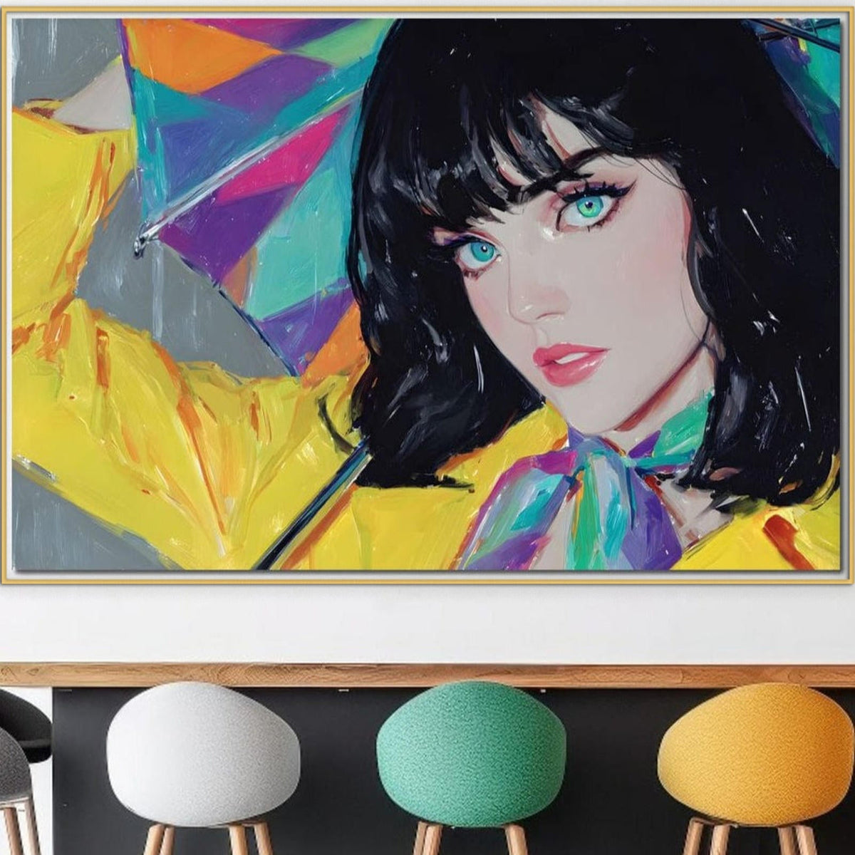 Tablou Canvas Premium, LuxCanva® G1216, Energia Tineretii, Privire, Curcubeu, Umbrela, Ploaie, Ochi, Turcoaz, Zambet, Cromatic, Neon, Vise, Aura, Dans, Melodie, Acvatic, Salon, Birou, Living, - 40 X 60 / Doar Sasiu Lemn / Normala