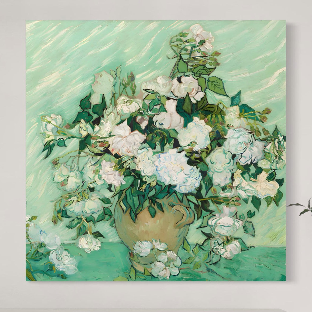 Tablou Canvas Premium LuxCanva® A1455, Trandafiri Albi , Living, Vaza, Flori, Planta, Decorativ, Alb, Culori Vibrante - 50 X 50