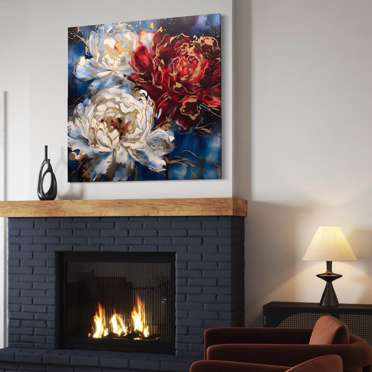 Tablou Canvas Premium LuxCanva® A1463, Linii Aurii , Flori, Trio, Foita De Aur, Room, Culori Vibrante - 50 X 50