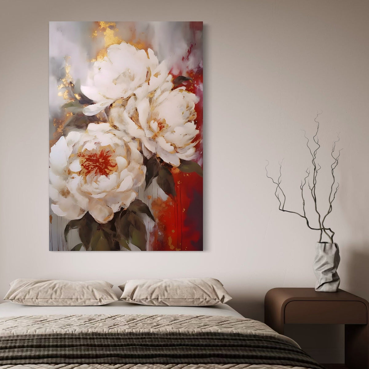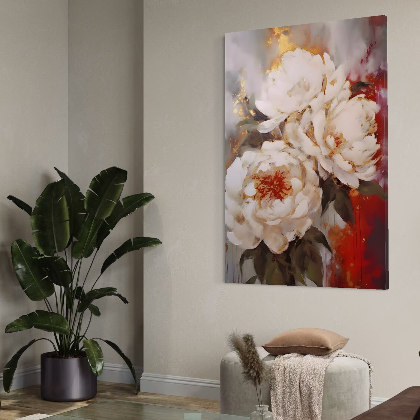 Tablou Canvas Premium LuxCanva® A1471, Textura Florala , Room, Planta, Bujor, Alb, Natura, Dormitor, Culori Vibrante - 40 X 60