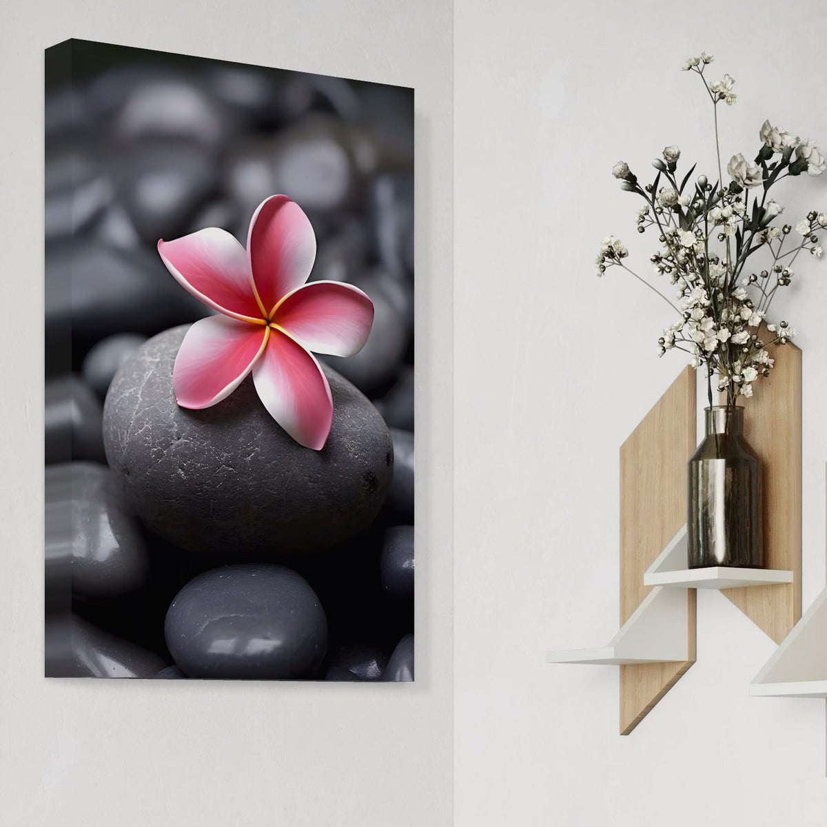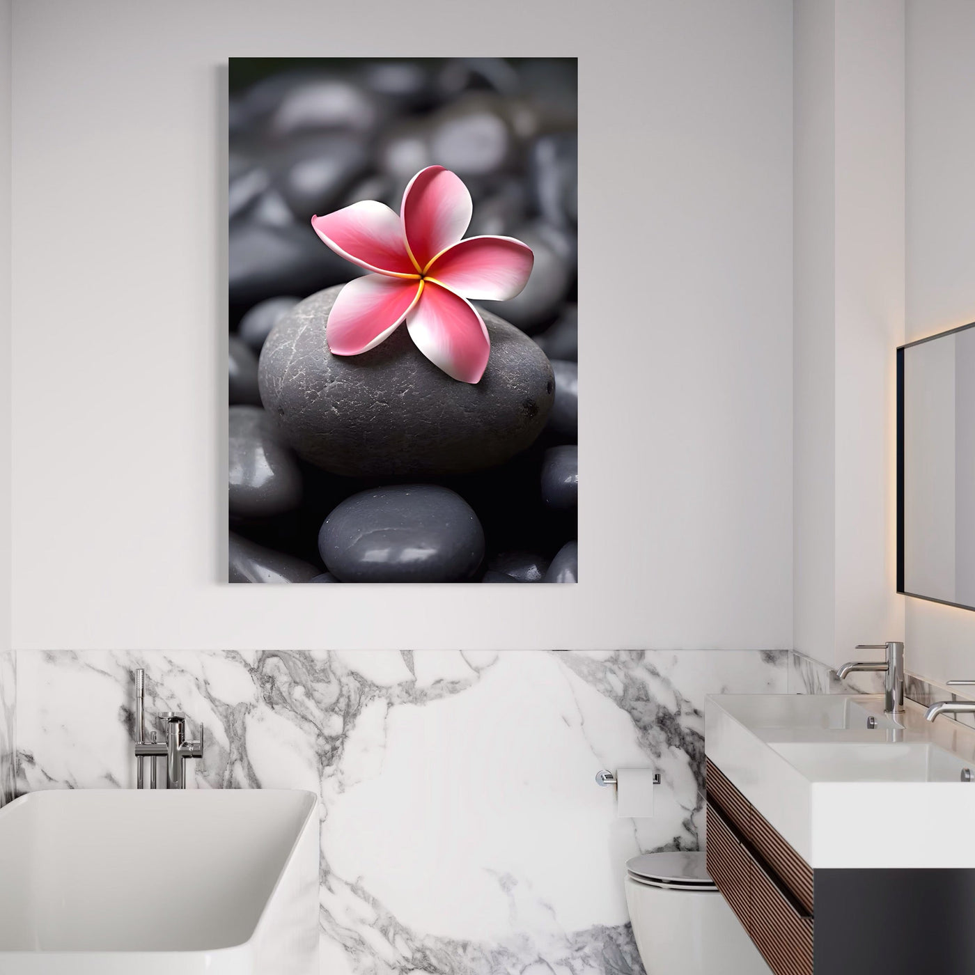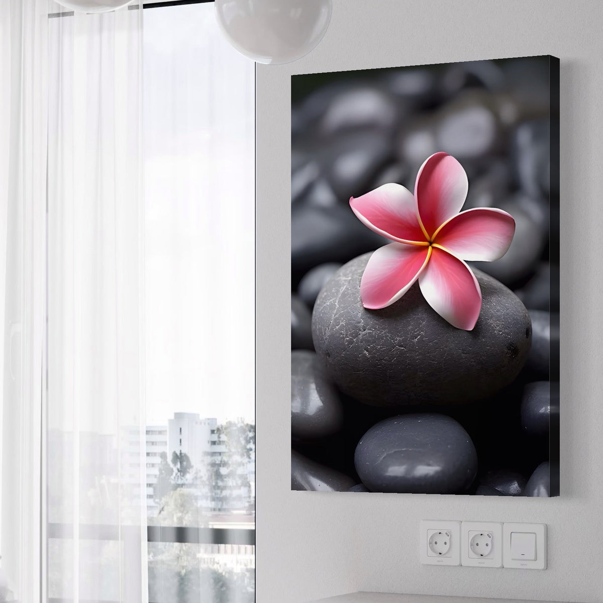 Tablou Canvas Premium LuxCanva® A1498, Flower Spa , Room, Relaxare, Floare Roz, Pietre, Decorativ, Living, Culori Vibrante - 40 X 60