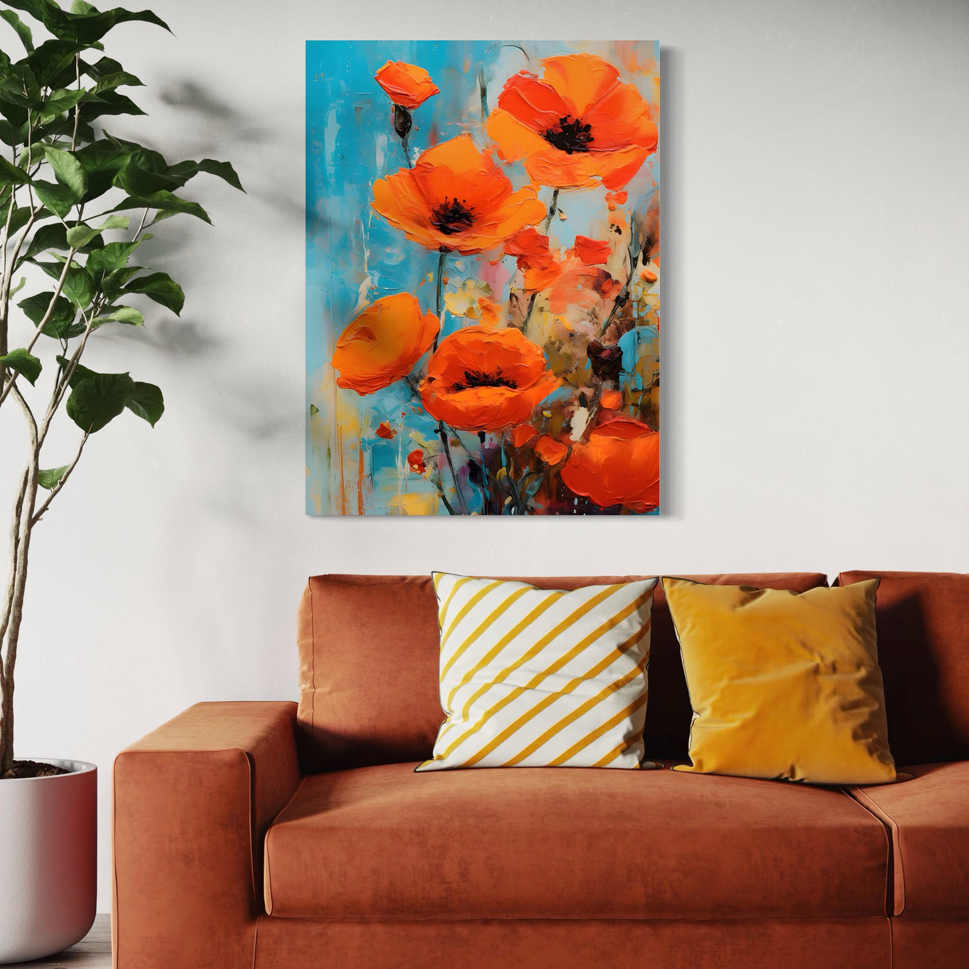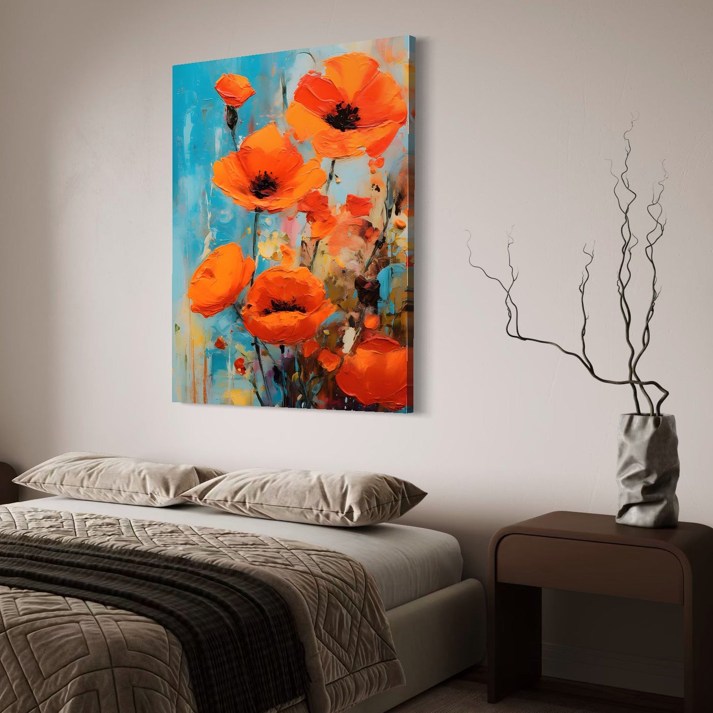 Tablou Canvas Premium LuxCanva® A1501, Orange Poppies , Decorativ, Flori, Campie, Natura, Rosu, Living, Culori Vibrante - 60 X 80