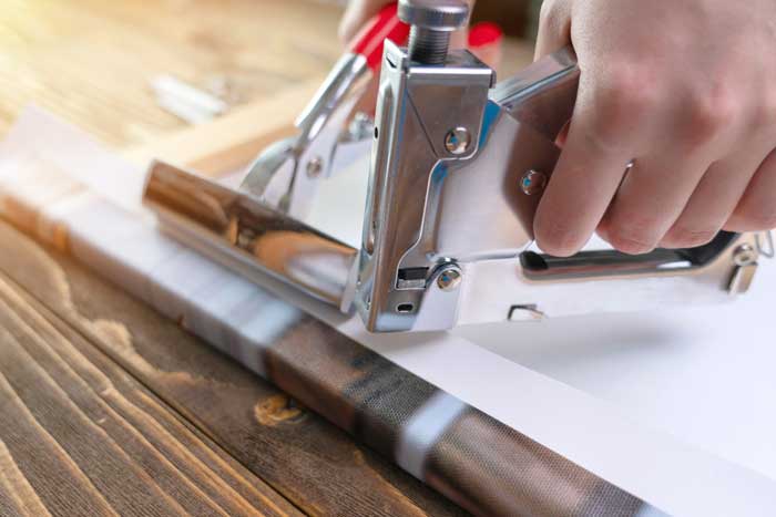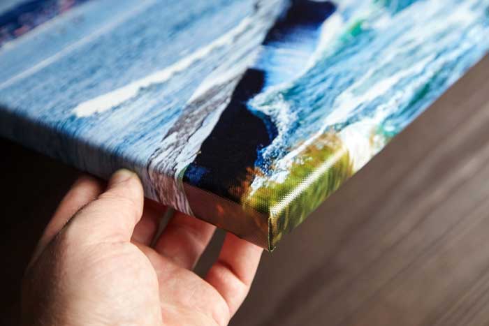 Panza canvas este intins pe un sasiu din lemn de brad, fara noduri. Panza este prinsa cu capse metalice de-a lungul marginei sasiului.