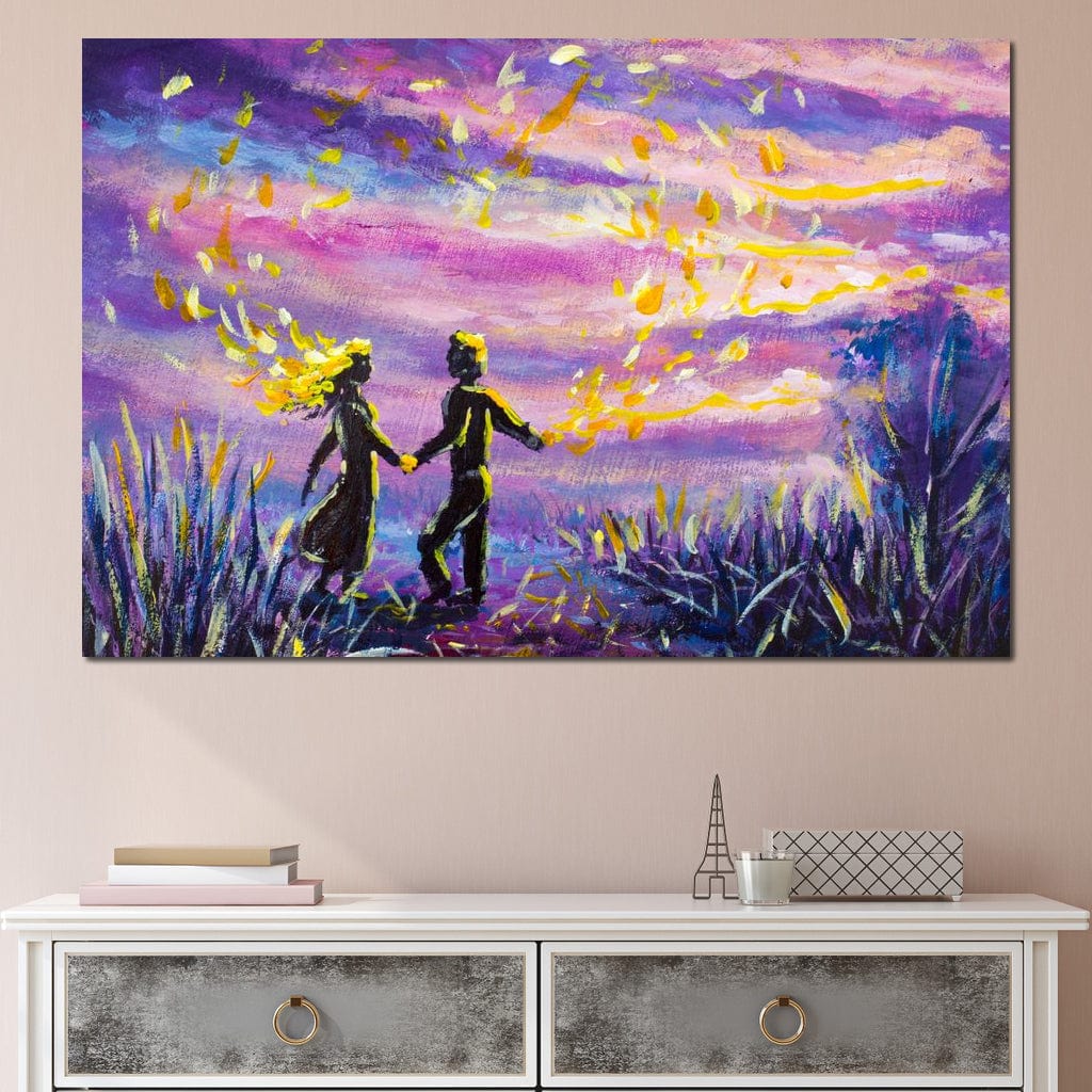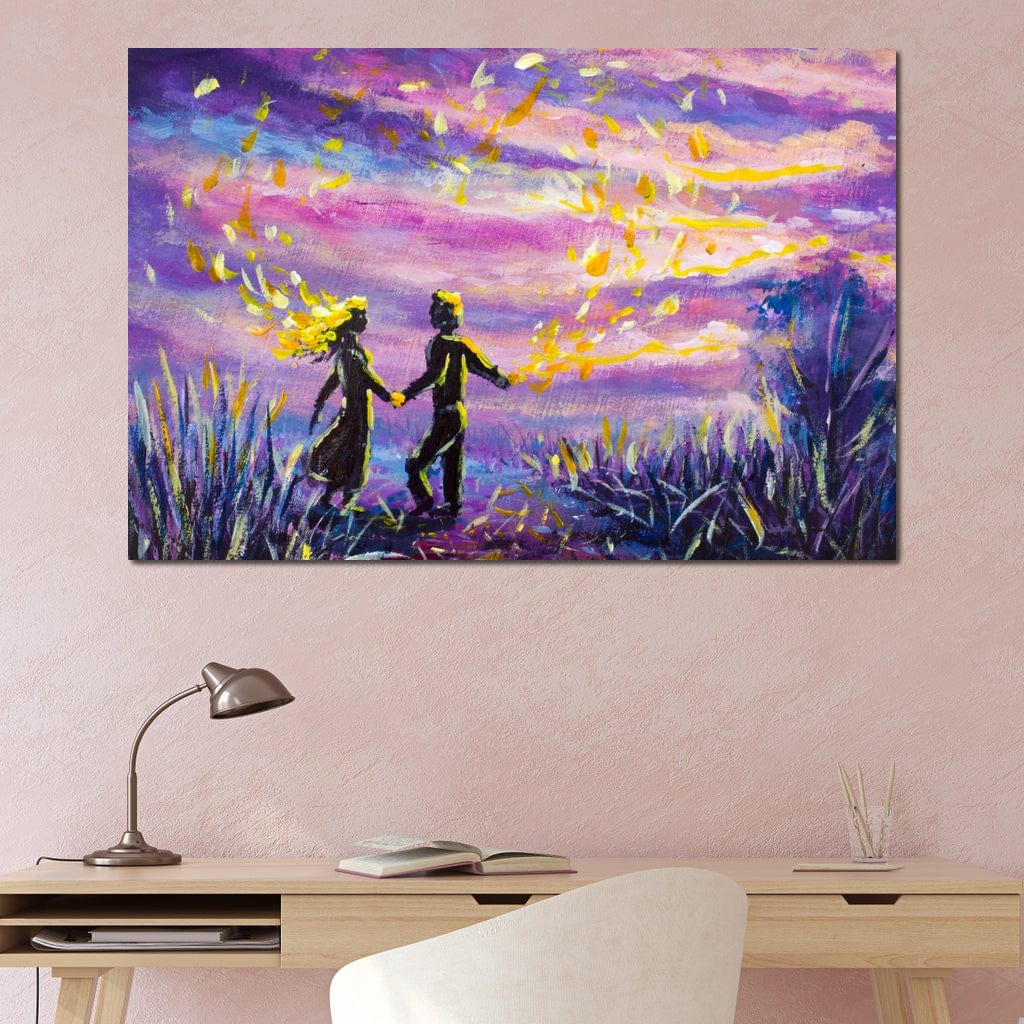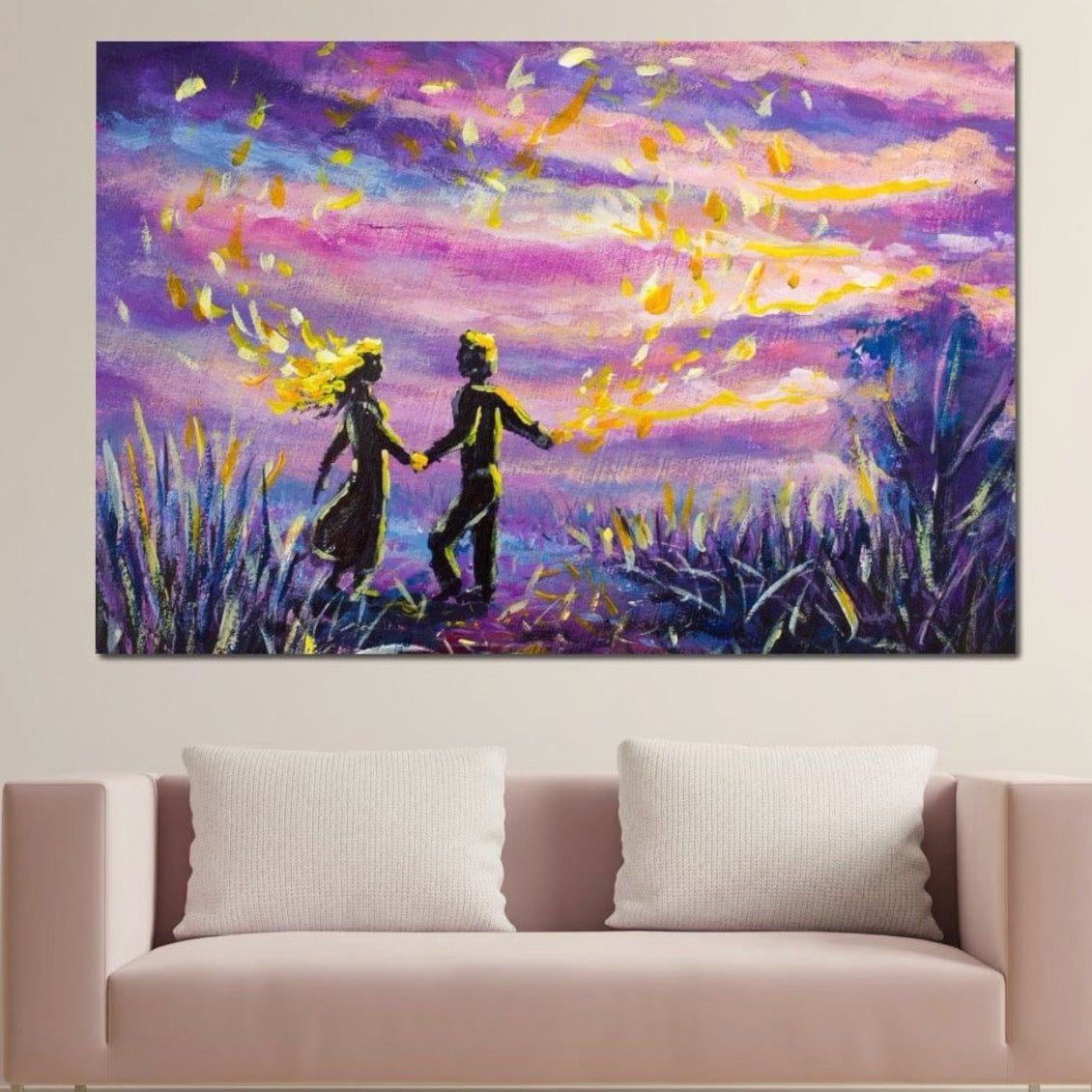 Tablou Canvas Premium LuxCanva® E1032, Mana in Mana Spre Infinit, Magie, Visare, Eternitate, Lila, Cuplu, Living Room, Culori vibrante